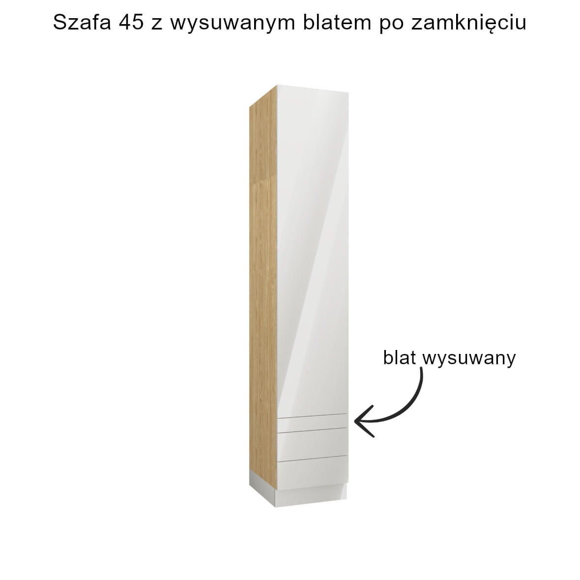 - szafa jednodrzwiowa z szufladami, drążkiem i wysuwanym blatem, szer. 45 cm