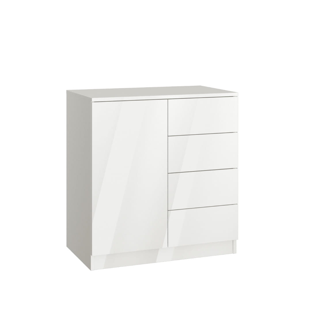 Wariant połysk:Kolor korpusu/wnętrza: Dąb olejowany / Kolor frontów: biały połysk / Widoczne elementy bazy w kolorze : Dąb olejowany. Komody całe białe.