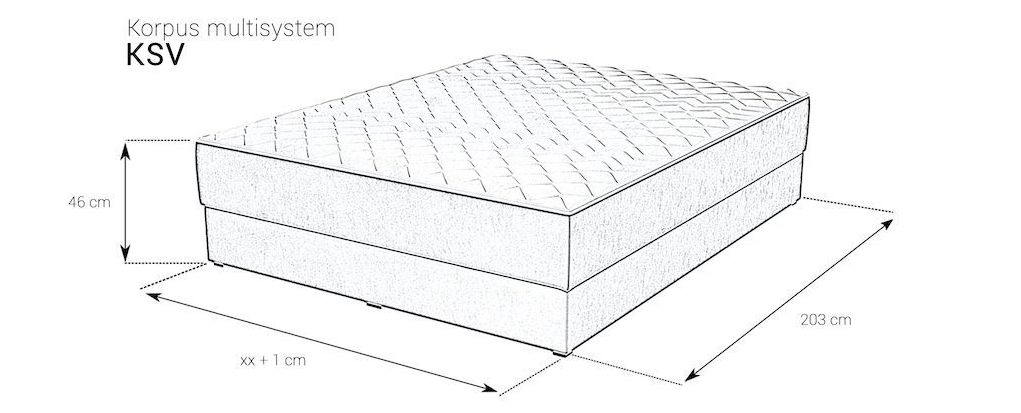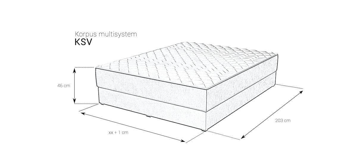 Istnieje możliwość zamówienia korpusu o nietypowej szerokości (od 120cm do 200cm) i długości (od 190cm do 220cm) w odstępach co 10 cm (za dopłatą). Przy wybraniu nietypowej szerokości korpusu, należy także pamiętać o konieczności zamówienia zagłówka Box Multisystem o nietypowej szerokości (również za dopłatą).