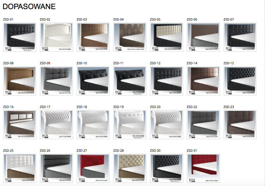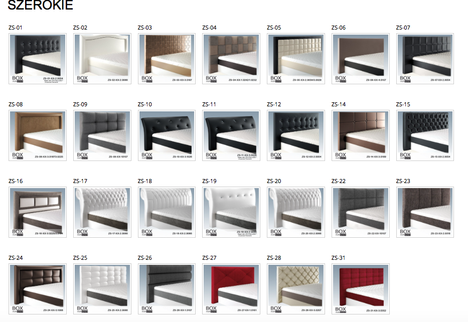 Szerokość korpusu jest większa od stosowanego w nim materaca o ok. 1 cm. Dlatego minimalna szerokość zagłówka, który można skompletować z tym korpusem jest również o 1 cm większa od szerokości materaca.