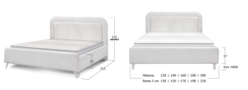 • Rozmiar materaca łóżka: standard 120x200140x200 | 160x200 | 180x200 | 200x200 cm, niestandardowe 120x210 | 140x210 | 160x210 | 180x210 | 200x210 | 120x220 | 140x220 |160x220 | 180x220 | 200x220
