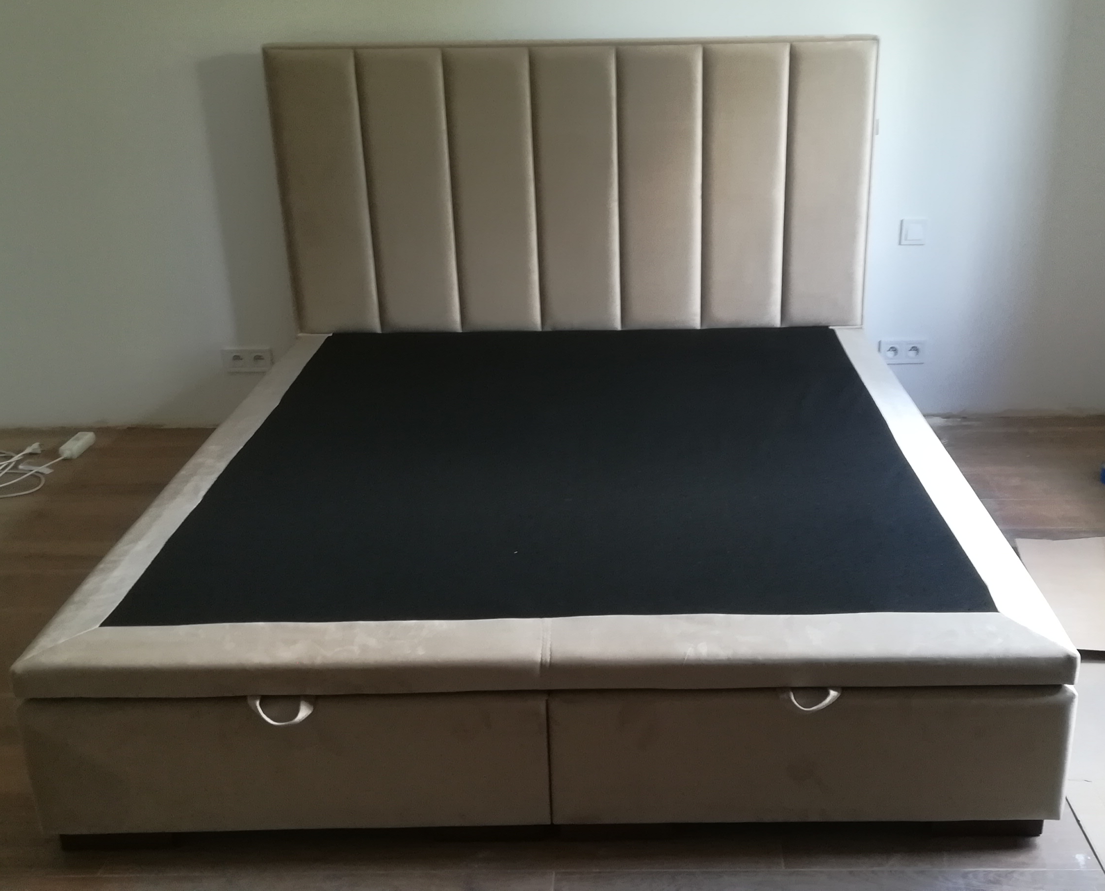 Pojemnik jest es­te­tycz­nie wy­koń­czo­ny czarną flizeliną, a sam system podno­sze­nia stelaża oparty jest na nie­miec­kich si­łow­ni­kach gazowych, dzięki czemu bardzo łatwo jest dostać się do wnętrza łóżka.