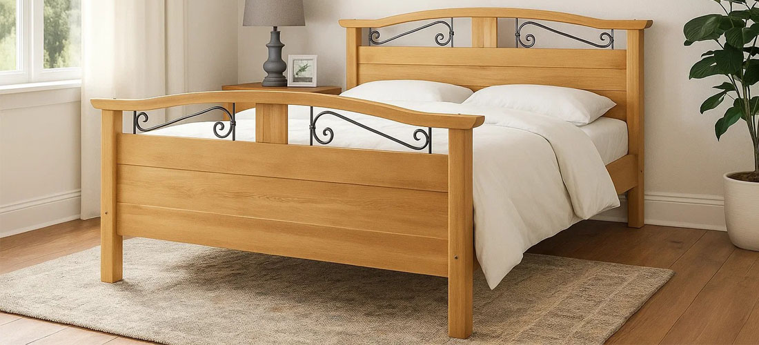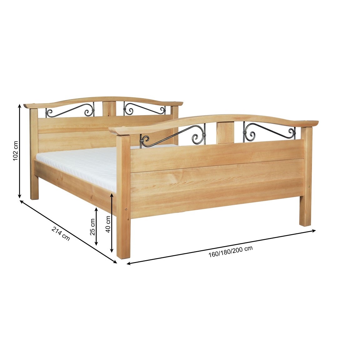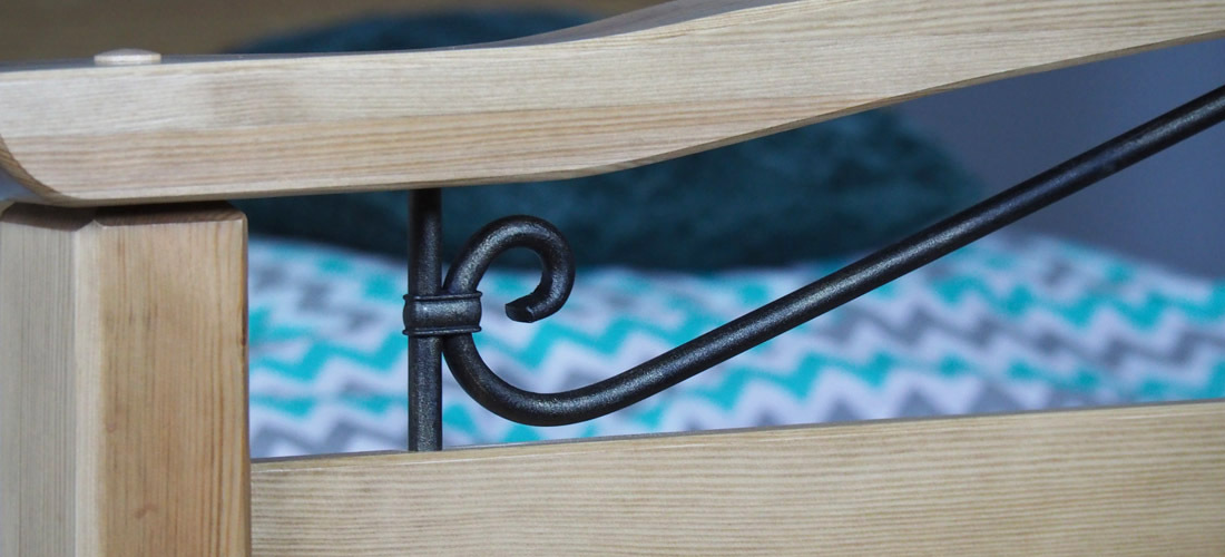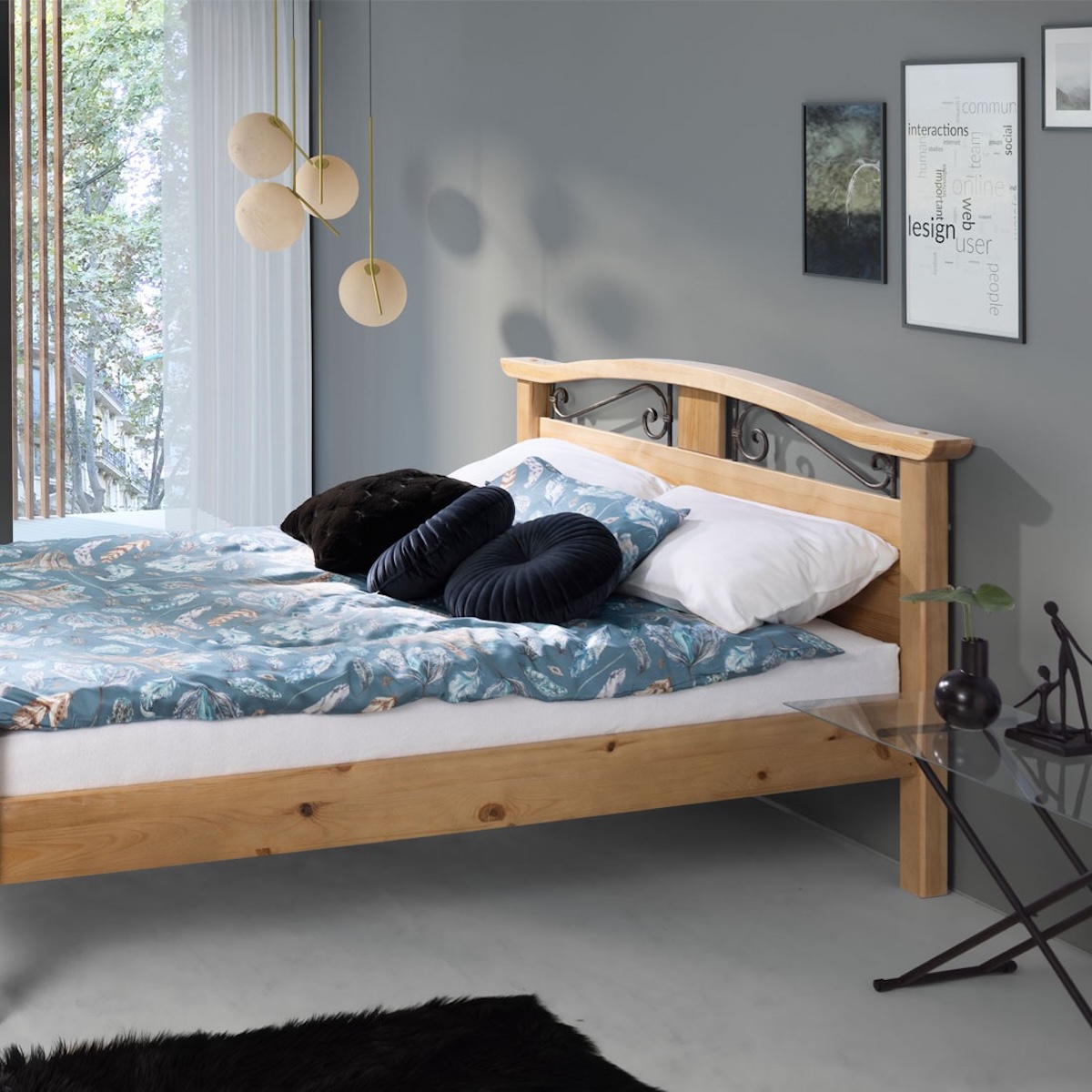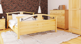 odznacza się wyjątkową trwałością. Mebel jest nie tylko bardzo wygodny, ale i dekoracyjny, dlatego może być prawdziwą ozdobą wnętrza. Dodatkowego piękna temu modelowi dodają kute metale wewnątrz zagłówka. Pozytywny zdrowotnie klimat, jaki wydziela drewno, bardzo dobrze wpłynie na samopoczucie domowników.