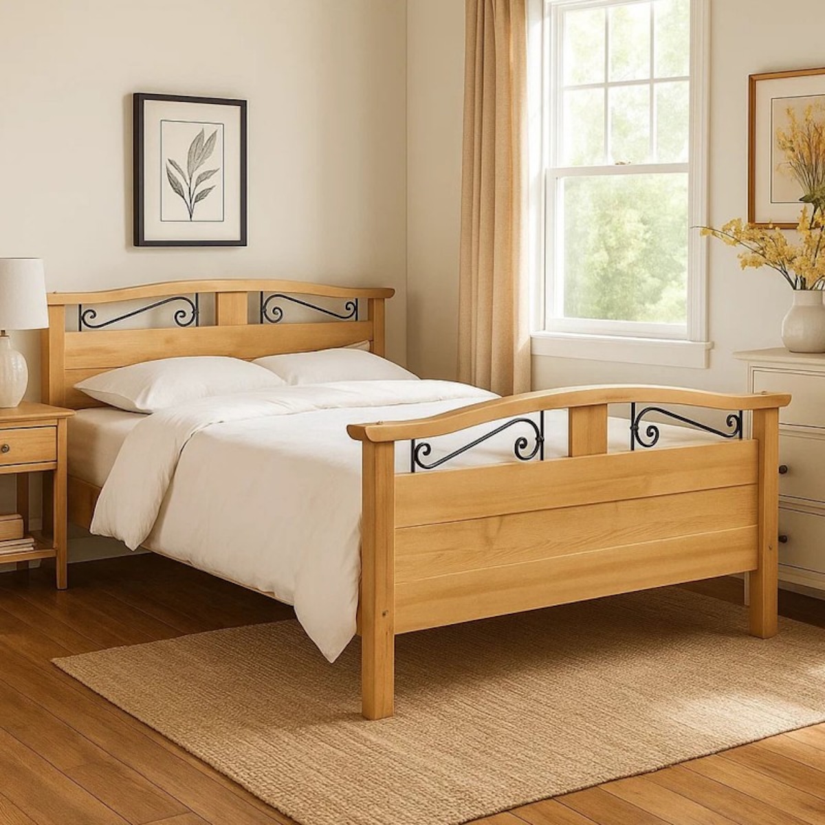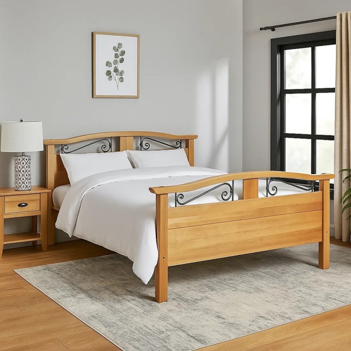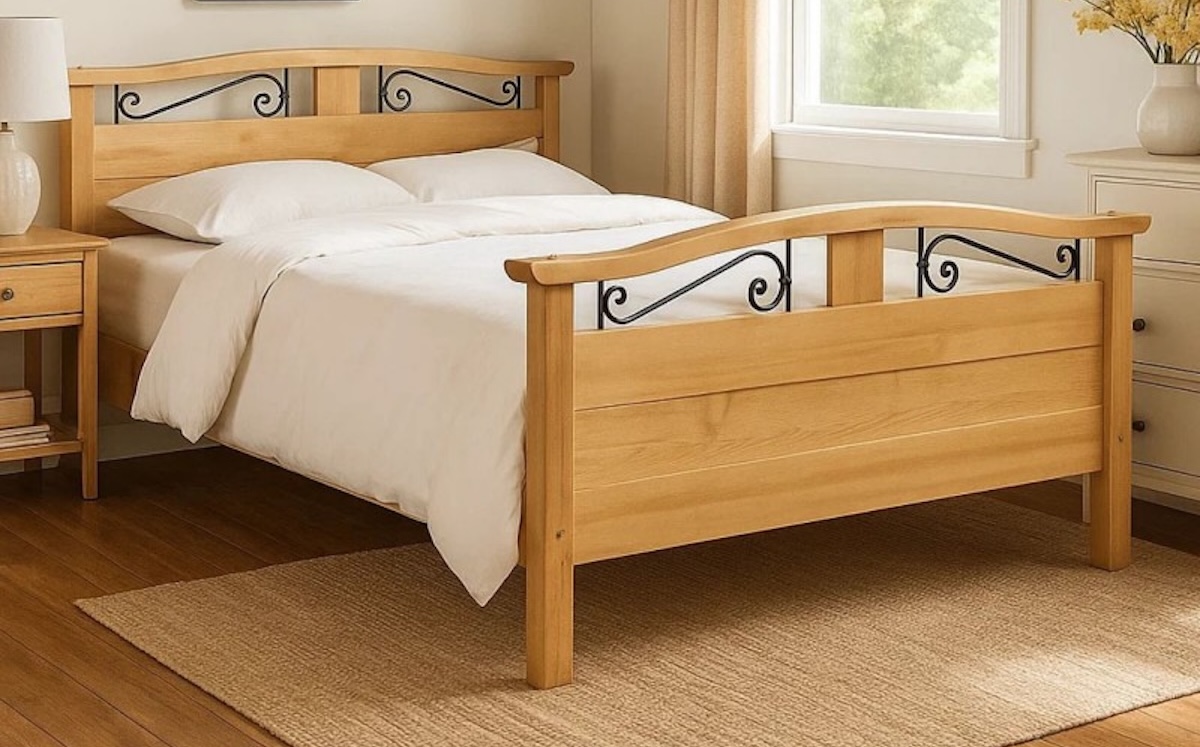 odznacza się wyjątkową trwałością. Mebel jest nie tylko bardzo wygodny, ale i dekoracyjny, dlatego może być prawdziwą ozdobą wnętrza. Dodatkowego piękna temu modelowi dodają kute metale wewnątrz zagłówka. Pozytywny zdrowotnie klimat, jaki wydziela drewno, bardzo dobrze wpłynie na samopoczucie domowników.