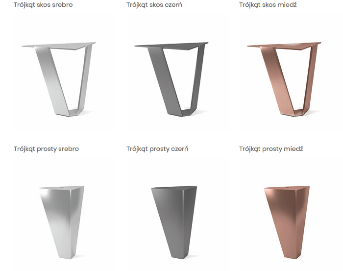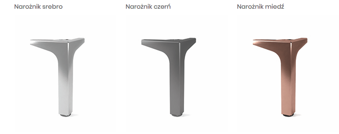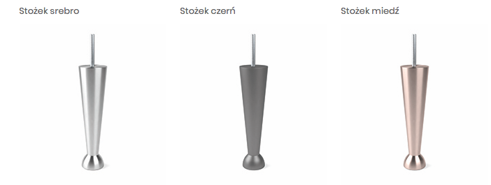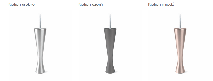 Dostępne w kolorach: srebro, czerń, miedź. Wysokość nóżek 16 cm.