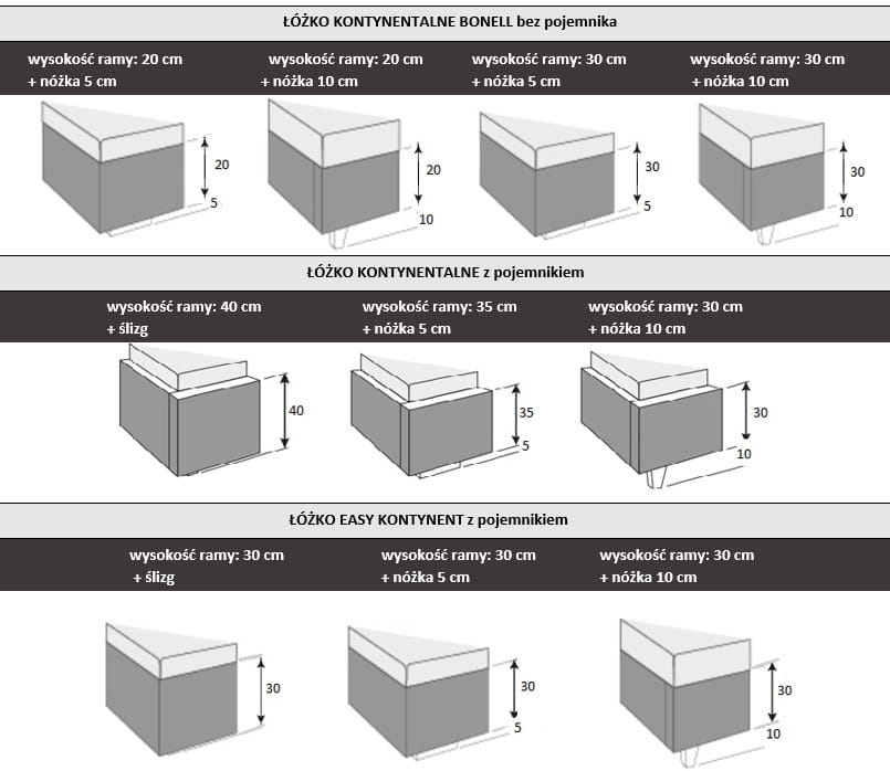 Dostępne modele nóżek do łóżka w wersji kontynentalne