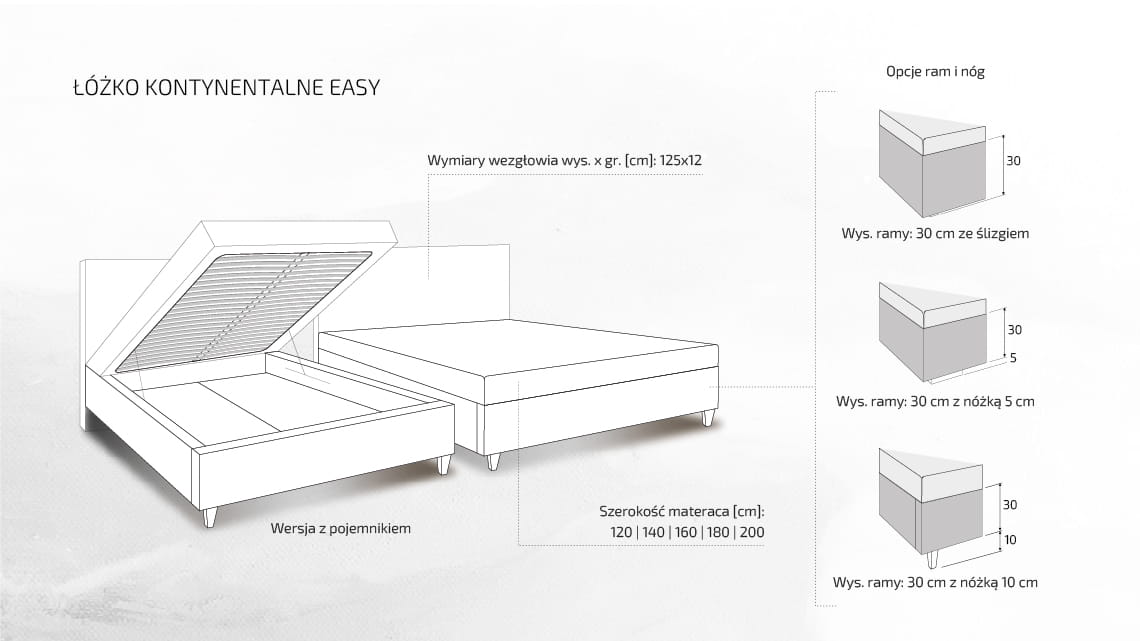 Łóżko VALENTINO wersja kontynentalna z pojemnikiem lub bez