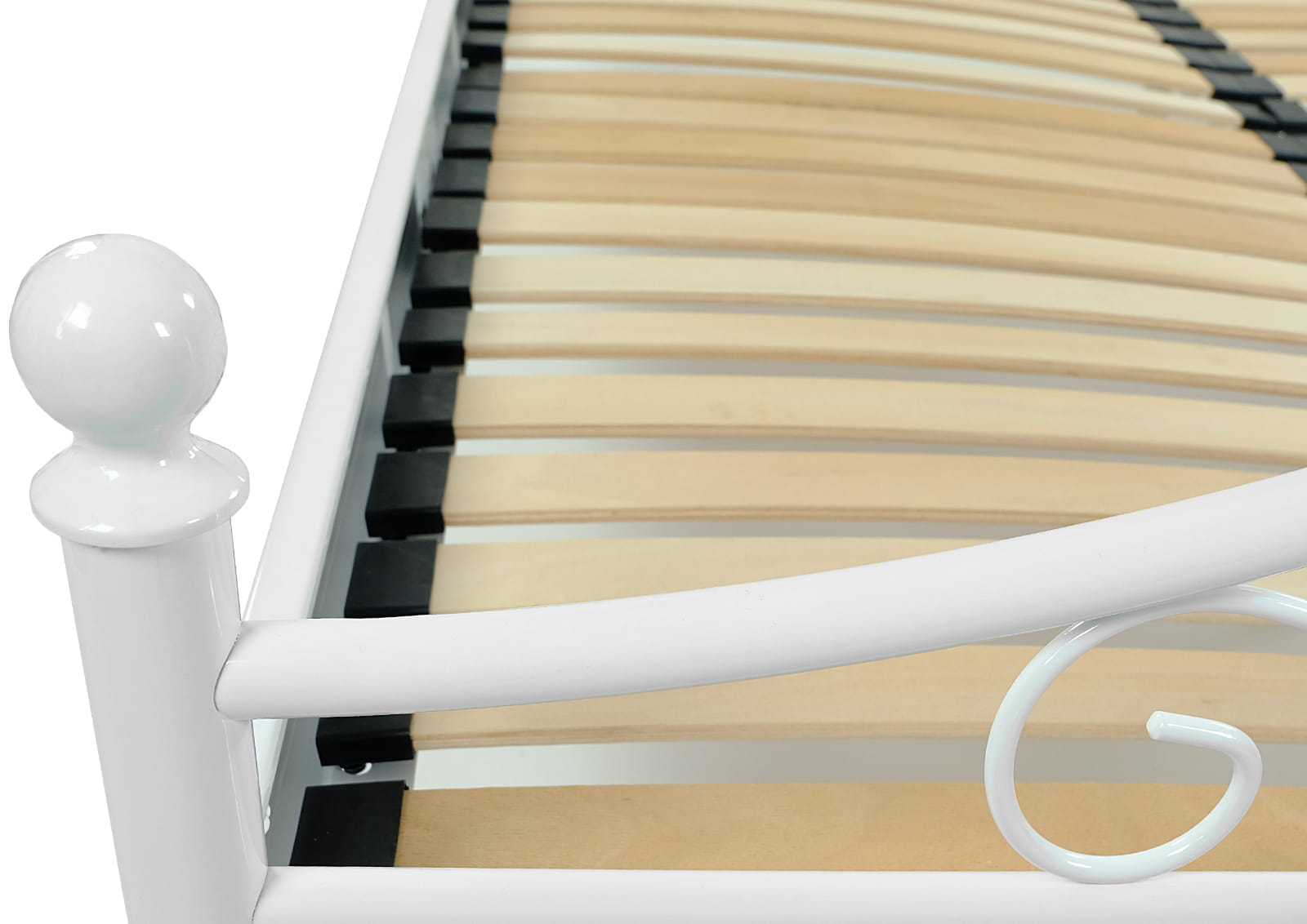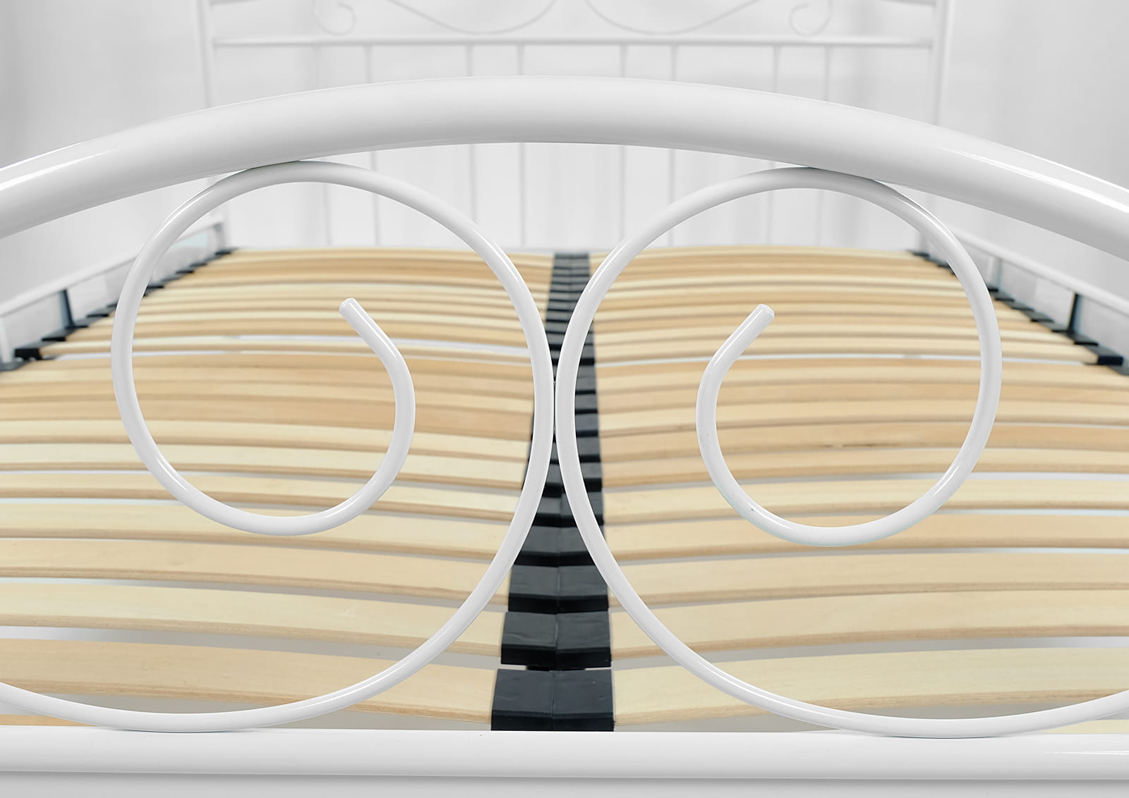 Metalowe łóżka sypialniane w połączeniu ze sprężystym stelażem – bardzo wygodne i łatwe do utrzymania w czystości - dzięki temu są doskonałe dla ludzi żyjących w pośpiechu i alergików. Spokojny sen zapewnia nieskrzypiąca konstrukcja łóżka. Stelaż zrobiony jest z elastycznych listewek zamontowanych w plastikowych uchwytach.