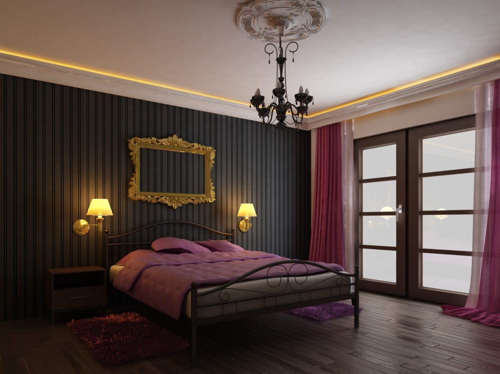 z pięknym wezgłowiem w romantycznym stylu. Nada sypialni nieco bajkowego charakteru.