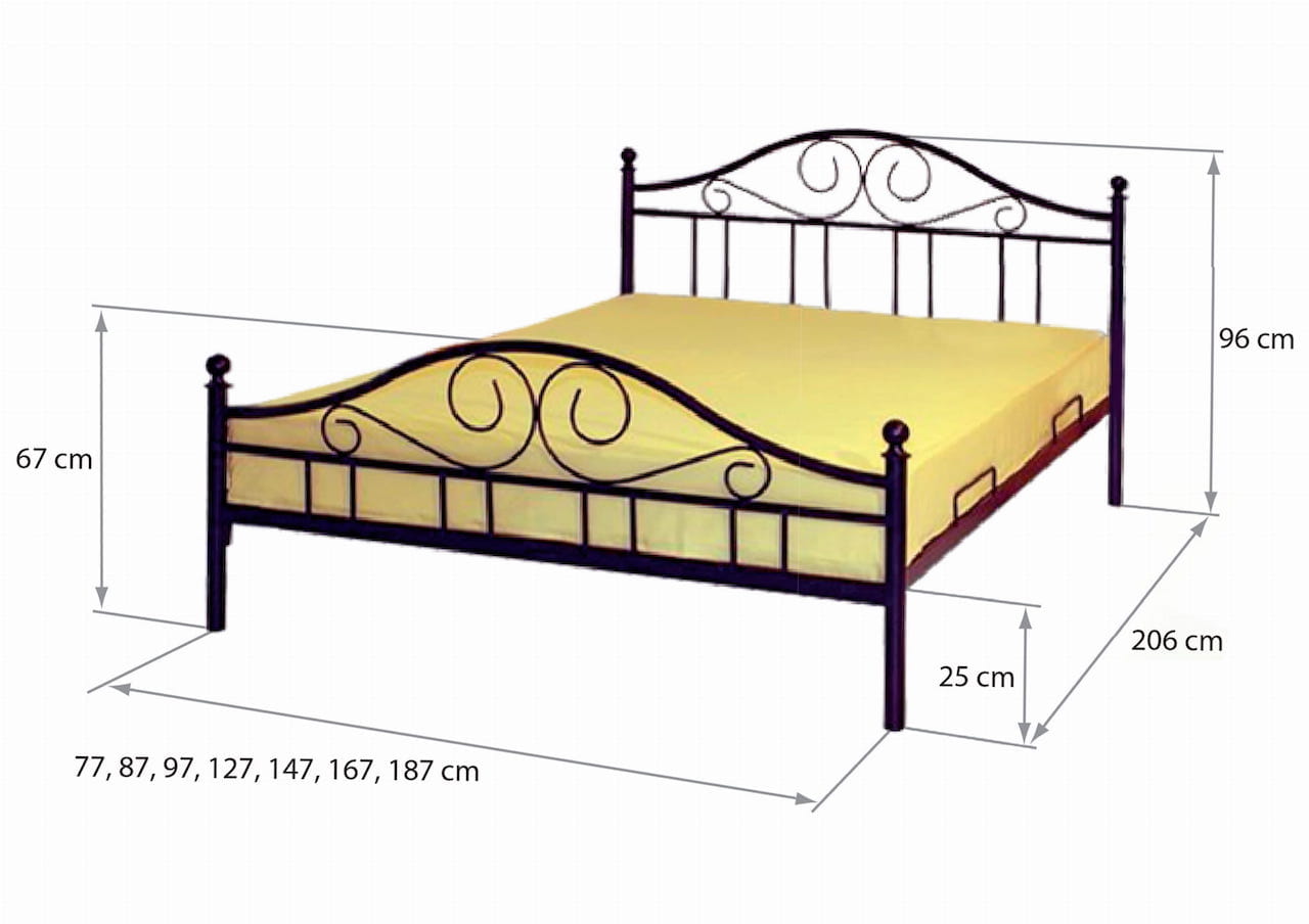 Nogi łóżka zostały wykonane z rury stalowej o średnicy 38 mm. Łuk wezgłowia z rury stalowej o średnicy 25 mm, poprzeczki w szczycie łóżka to rury stalowe o średnicy 20 mm i 14 mm. Elementy dekoracyjne tworzy pręt ciągniony okrągły o średnicy 8 mm. Nogi łóżka zostały zabezpieczone zaślepkami, chroniącymi przed uszkodzeniami podłoża.