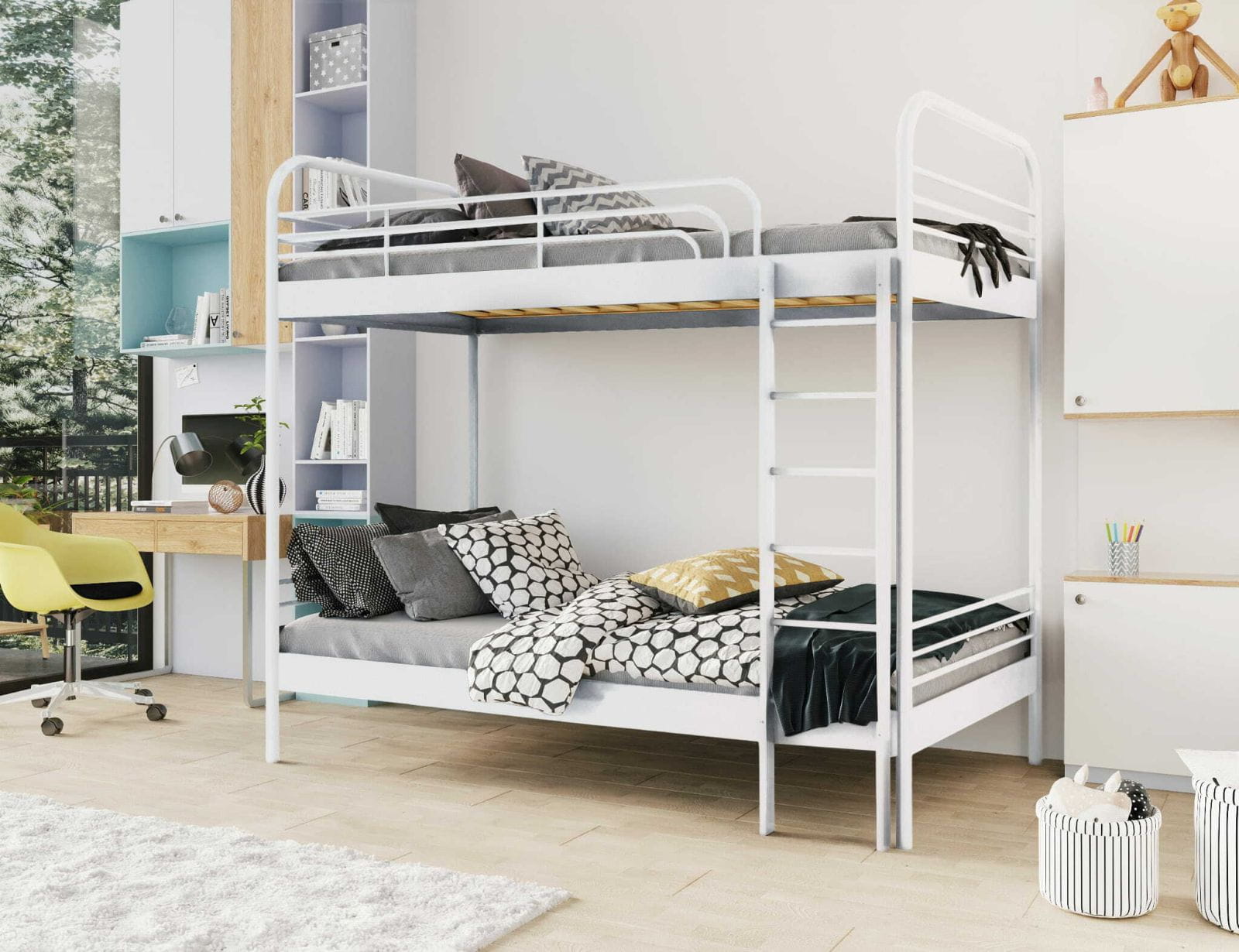 Maksymalna oszczędność miejsca przy bezkompromisowym bezpieczeństwie. Łóżko piętrowe Bartek zostało zaprojektowane z myślą o najbardziej wymagających użytkownikach: dzieciach i właścicielach obiektów noclegowych. Tam, gdzie drewniane łóżka piętrowe po czasie zaczynają trzeszczeć i "pływać", model Bartek stoi niewzruszony.