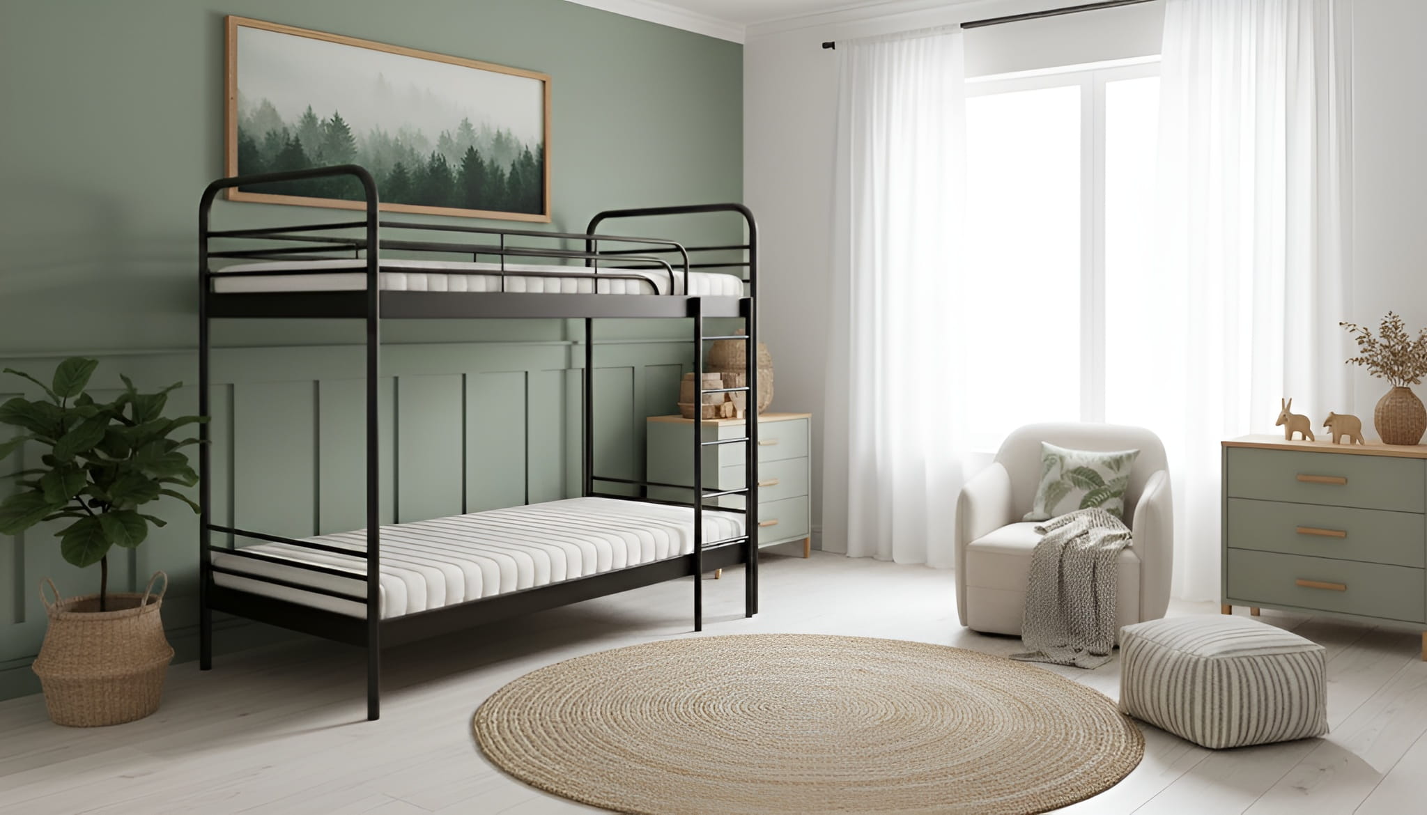 Bezpieczeństwo potwierdzone konstrukcją. Każdy element łóżka Bartek – od gęsto rozstawionych szczebli barierki po ergonomiczną drabinkę – ma jeden cel: spokój użytkownika. Spawy są szlifowane na gładko, a farba jest nietoksyczna i bezpieczna dla dzieci. To łóżko, którego nie "zużyjesz" przez lata.