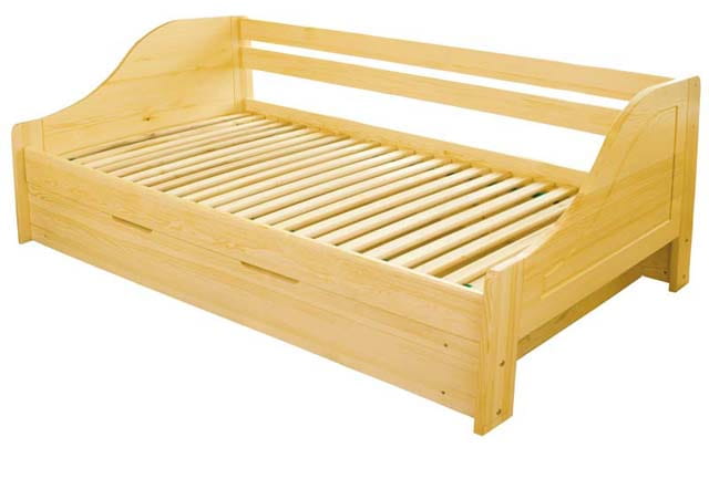 Łóżko wykonane z litego drewna sosnowego.Model z praktycznym pojemnikiem na pościel podnoszonym do góry z boku.