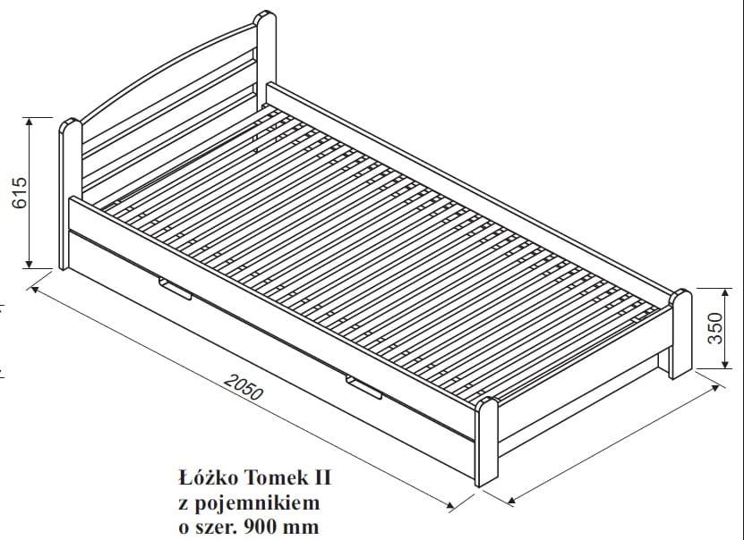 Łóżko TOMEK II z pojemnikiem to łóżko proste, eleganckie, a zarazem bardzo funkcjonalne.Łóżko wykonane z litego drewna sosnowego dostępne w wymiarze 90/200 i w kilku kolorach wybarwień.