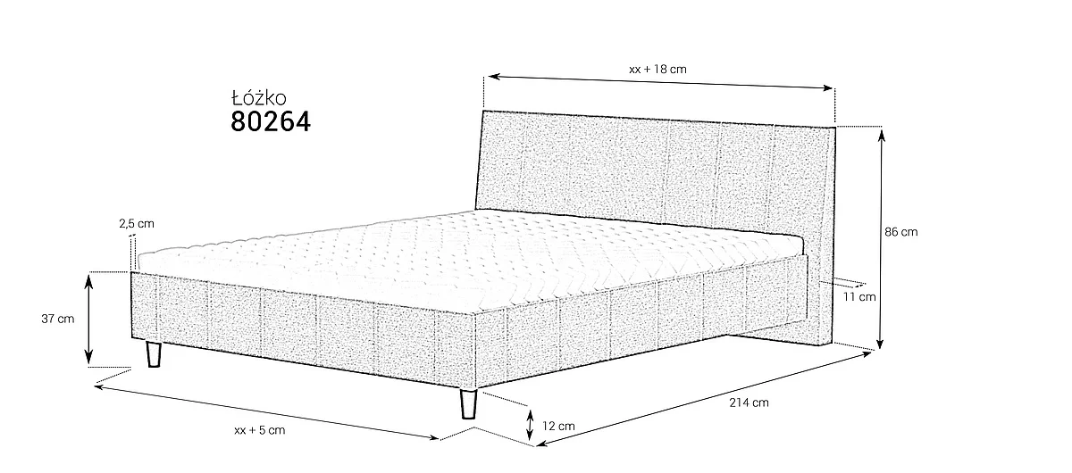 UWAGA: Za dopłatą możliwość zamówienia łóżka o nietypowej szerokości (od 120cm do 200cm) w odstępach co 10 cm.
