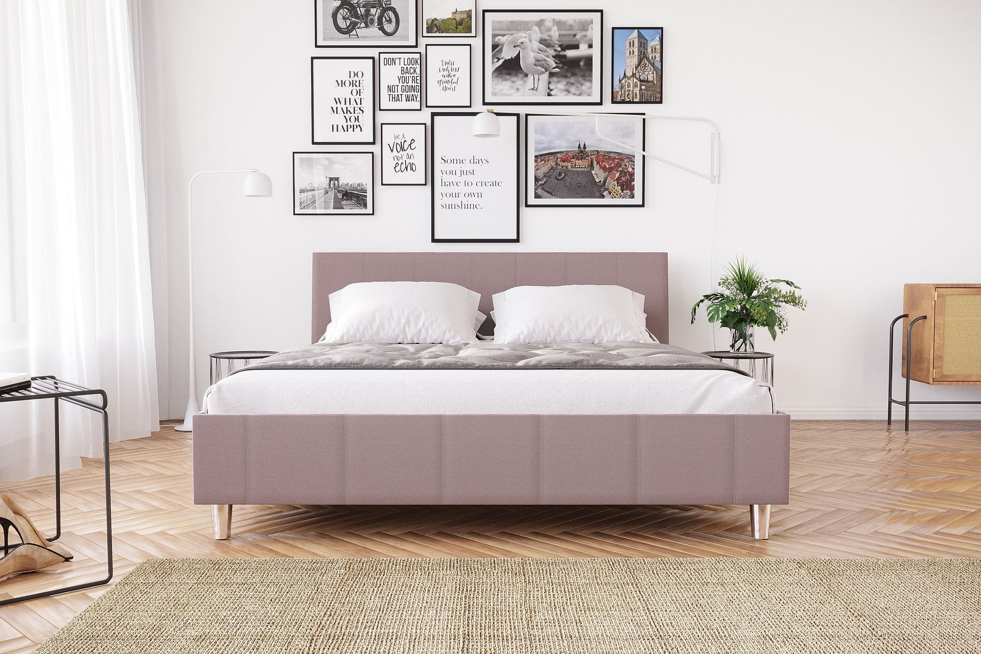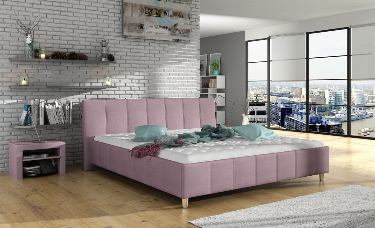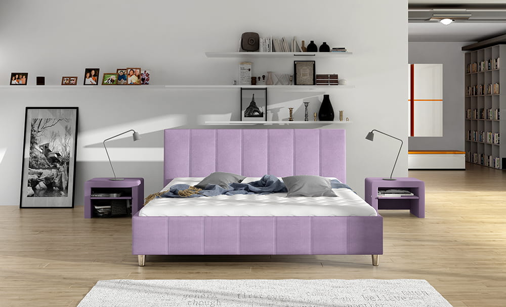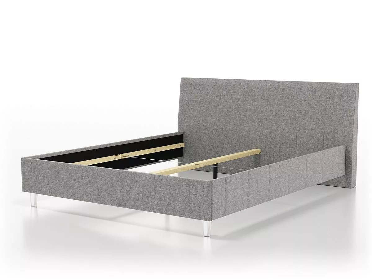 Nowoczesne łóżko tapicerowane za sprawą prostej i wąskiej ramy doskonale wpisze się w przytulny klimat małej sypialni, choć i w przestronnych wnętrzach zwolennicy lekkich form dostrzegą urok tego minimalistycznego mebla. Konstrukcja z płyty w obiciu z tkaniny meblowej, do wyboru z szerokiej gamy kolorystycznej. Łóżko wraz z zagłówkiem tworzą atrakcyjną i spójną całość. Dodatkowego charakteru zagłówkowi dodają pionowe przeszycia. Całość dopełniają srebrne nóżki. Poza standardowymi wymiarami, łóżko jest dostępne również w nietypowej szerokości. Zagłówek, po konsultacji z naszymi ekspertami w salonach sprzedaży, może zostać obustronnie otapicerowany. Dla uzyskania pełnego zadowolenia klienta zalecamy odpowiedni stelaż i materac z naszej oferty.