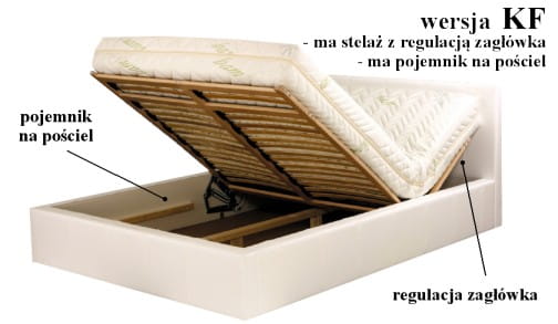 • wersja KF - łóżko wyposażone w jeden stelaż podnoszony KF z funkcją pojemnika