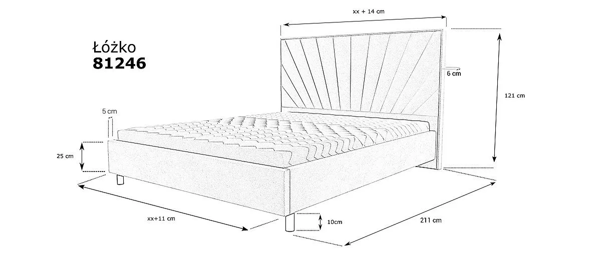 UWAGA: Za dopłatą możliwość zamówienia łóżka o nietypowej szerokości i długości w odstępach co 10 cm. Zagłówek łóżka w tylnej części jest otapicerowany.