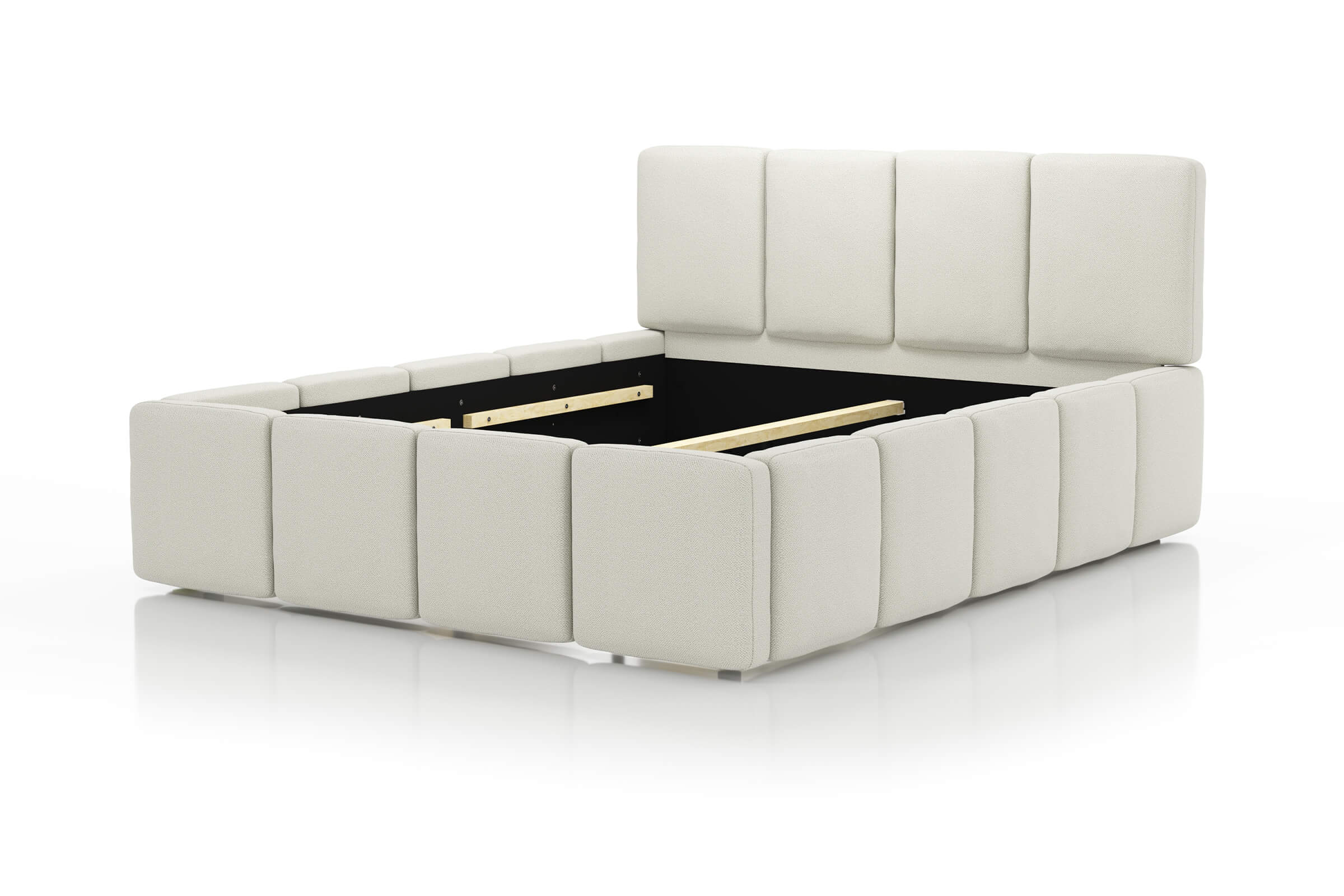 Opcjonalny pojemnik na pościel zapewnia dodatkową przestrzeń do przechowywania, zwiększając funkcjonalność mebla.