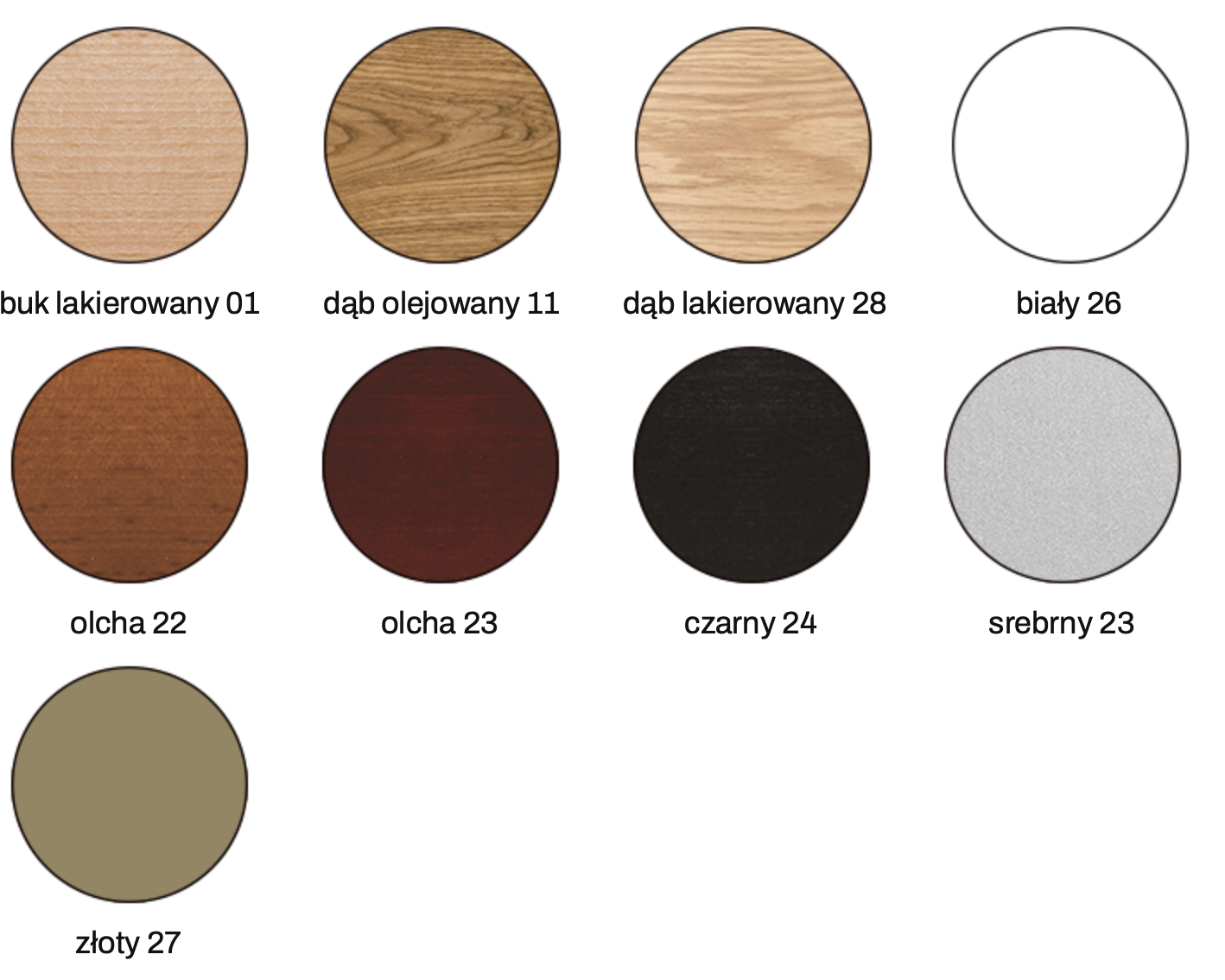 Nóżki drewniane modele C i 29 można barwić w 9 kolorach