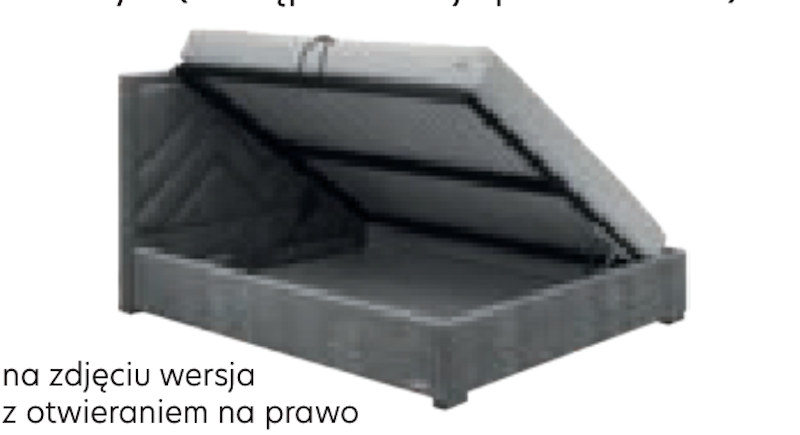 Łóżko z pojemnikiem posiada dwa systemy otwierania: od strony zanóżka lub z boku.