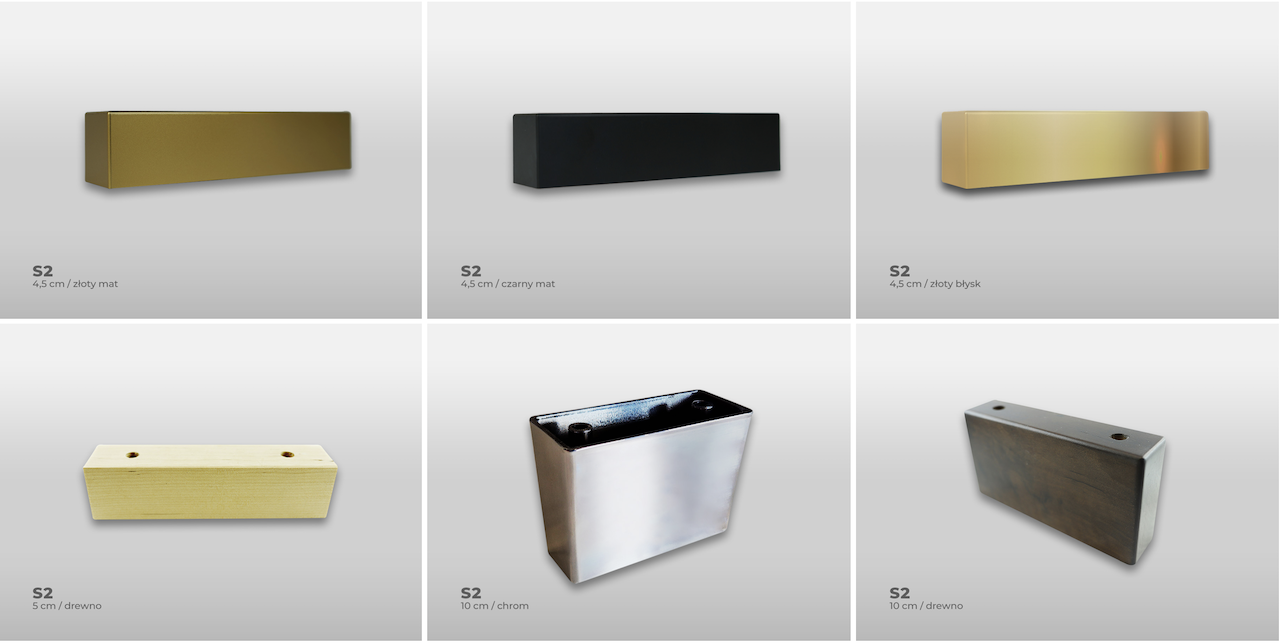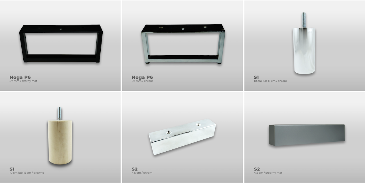 Nogi S1, S2 10 cm chrom i Prestige dostępne tylko przy bokach od 8 cm grubości.