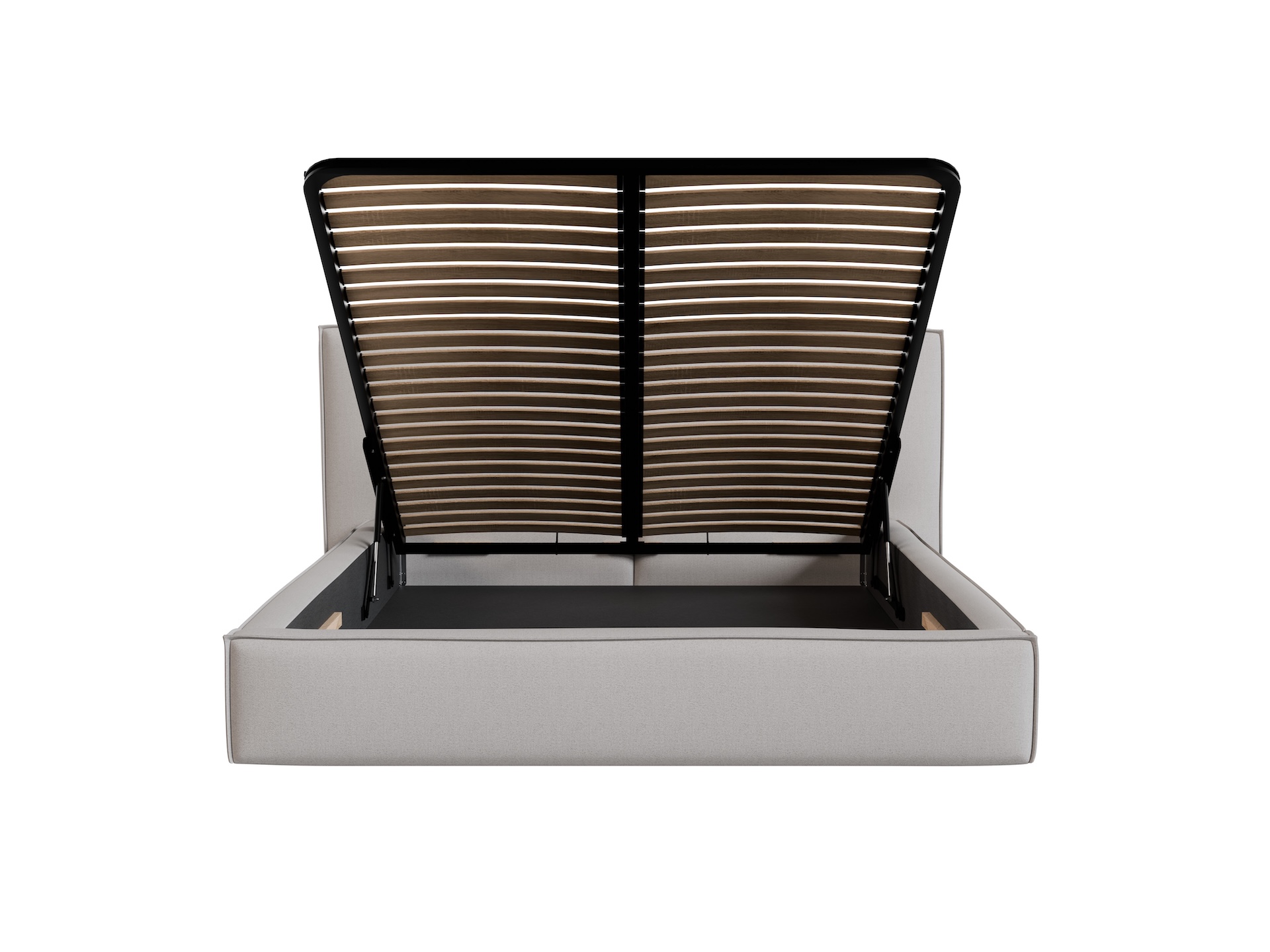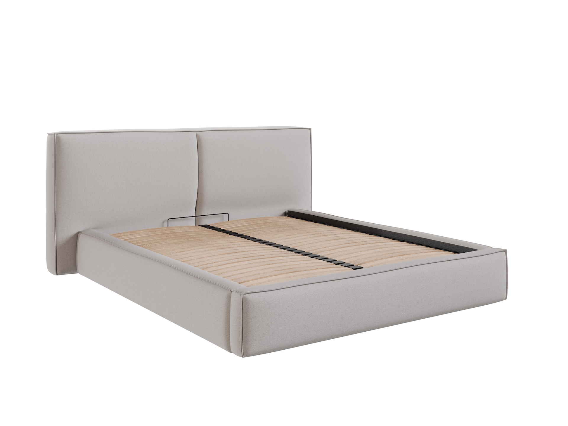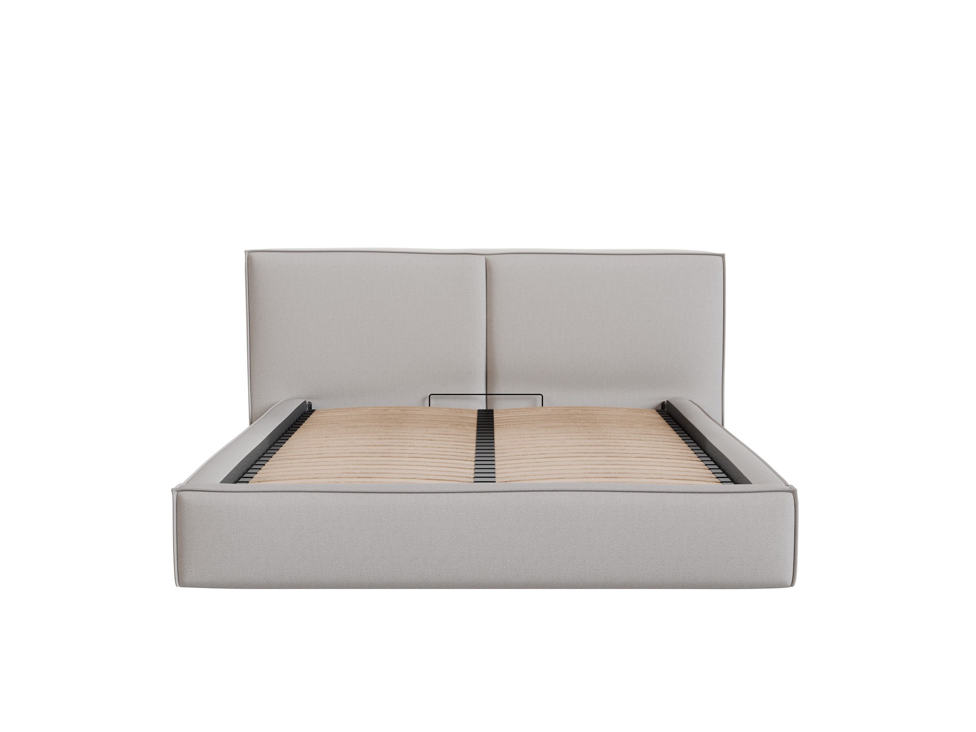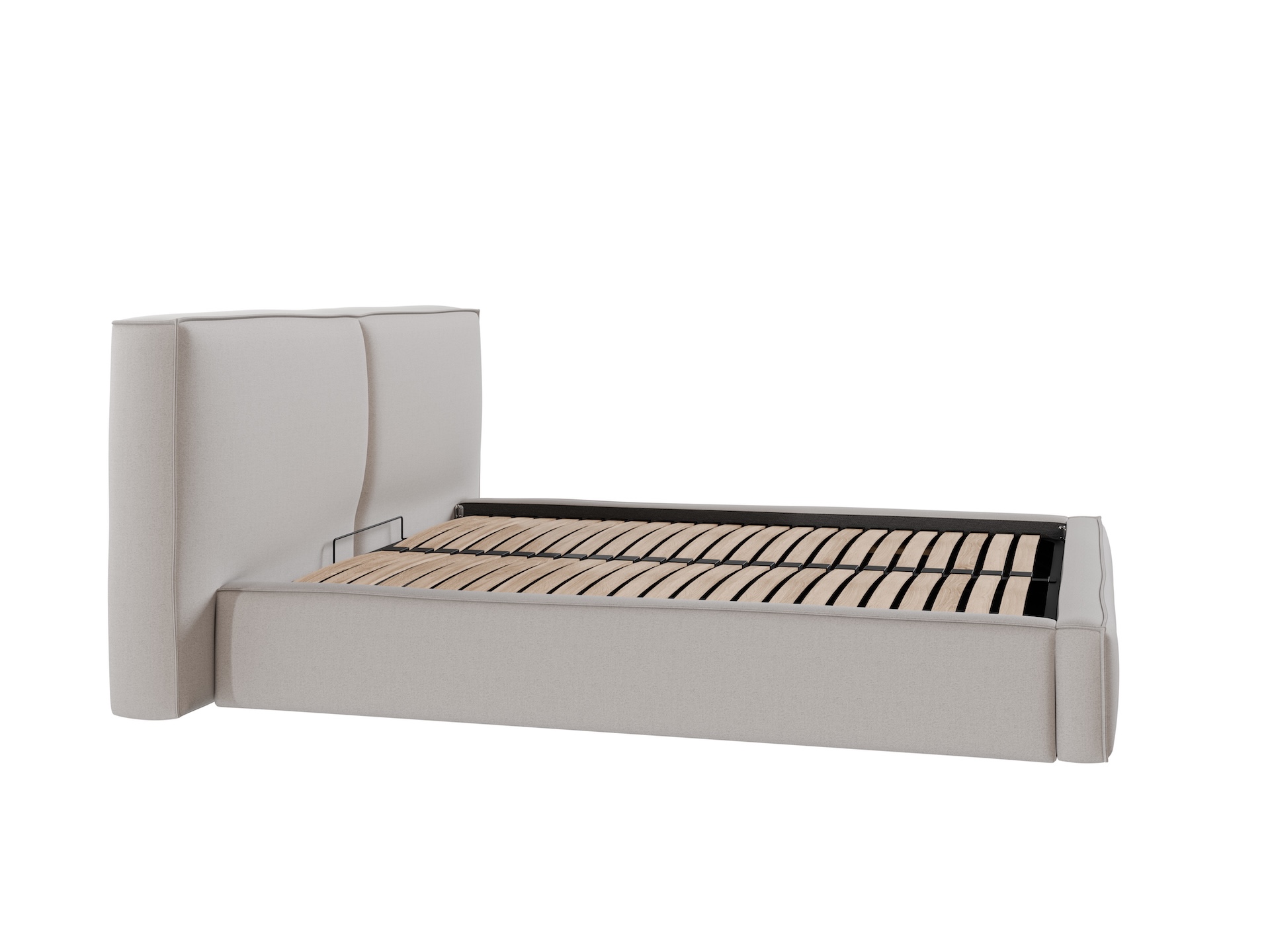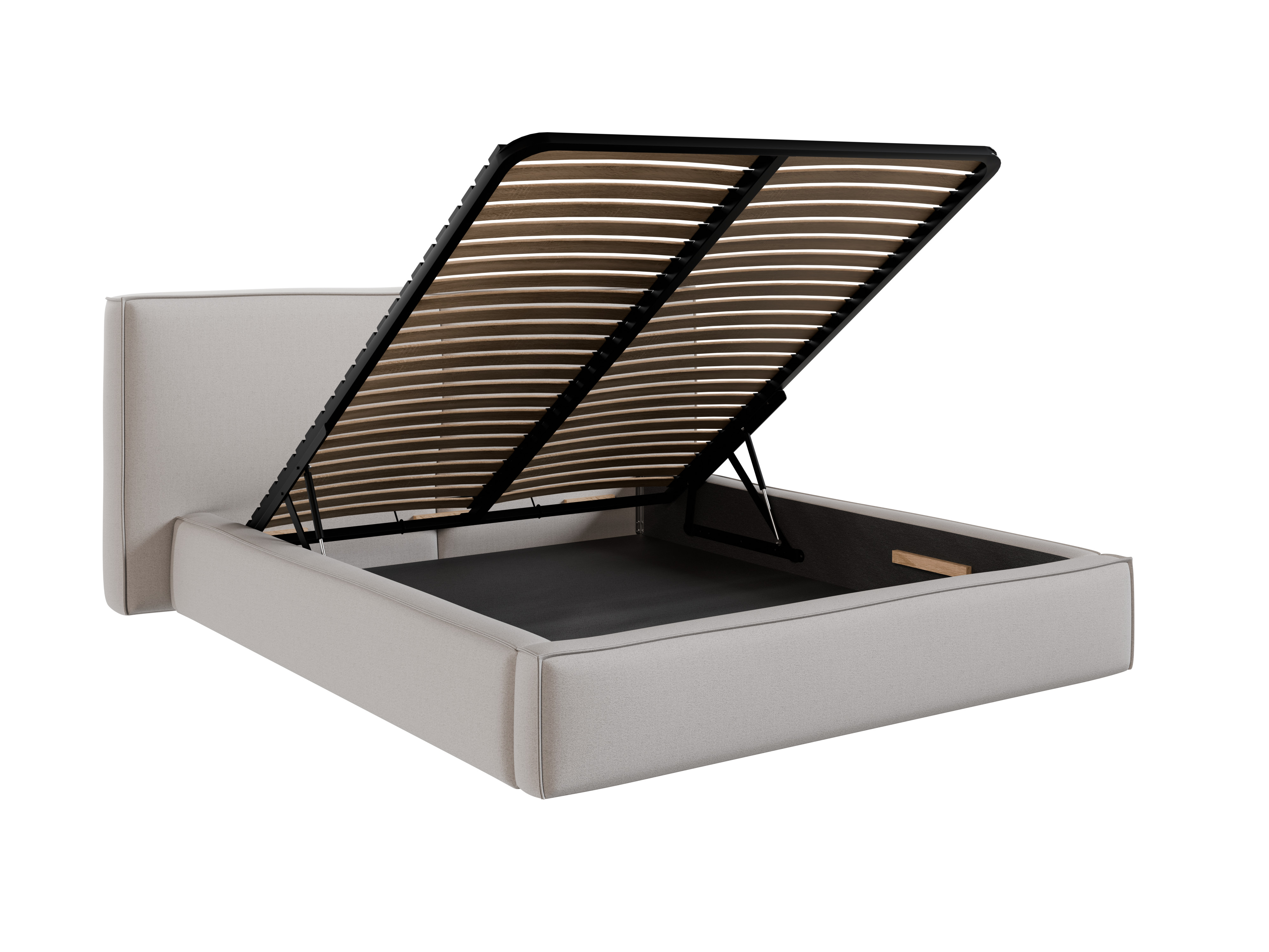 W łóżku z pojemnikiem dzięki zastosowaniu siłowników gazowych podnoszenie stelaża nie stanowi żadnego problemu,dno podwieszone na ramie łóżka, dzięki czemu nawet przy zastosowaniu wysokich nóg nie jest widoczne.