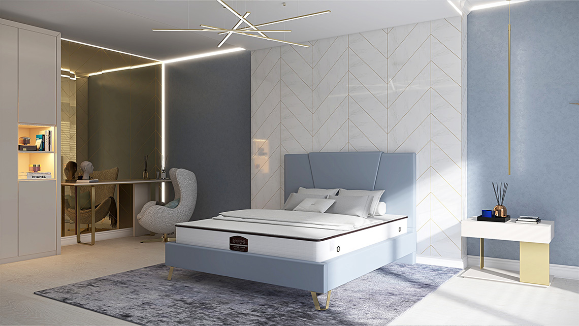 Łóżko Valentino to mebel z kolekcji Elegant marki Bed Design. Zaprojektowany został z myślą o użytkownikach poszukujących eleganckiego, dalekiego od przeciętności, a zarazem komfortowego i w pełni funkcjonalnego wyposażenia sypialni. Uwagę przyciąga dość proste, a pomimo to interesujące i wyrafinowane wzornictwo wezgłowia, które będzie prawdziwą ozdobą wnętrza. Rodzaj i kolorystykę materiału obiciowego można wybrać spośród licznych propozycji producenta, kreując tym samym aranżację według własnego pomysłu. Łóżko Valentino dostępne jest w dwóch wersjach: z pojemnikiem na pościel lub bez. Przestronny pojemnik wykończony jest wewnątrz tkaniną, a w jego spodzie znajdują się otwory wentylacyjne dla zapewnienia właściwej cyrkulacji powietrza, która jest nieodłącznym elementem zdrowego środowiska snu. Wygodne, niewymagające wiele wysiłku otwieranie umożliwiają siłowniki gazowe. Solidną konstrukcję mebel zawdzięcza zastosowaniu mocnych i trwałych elementów, a wysoką jakość wykonania ręcznej pracy tapicerów.