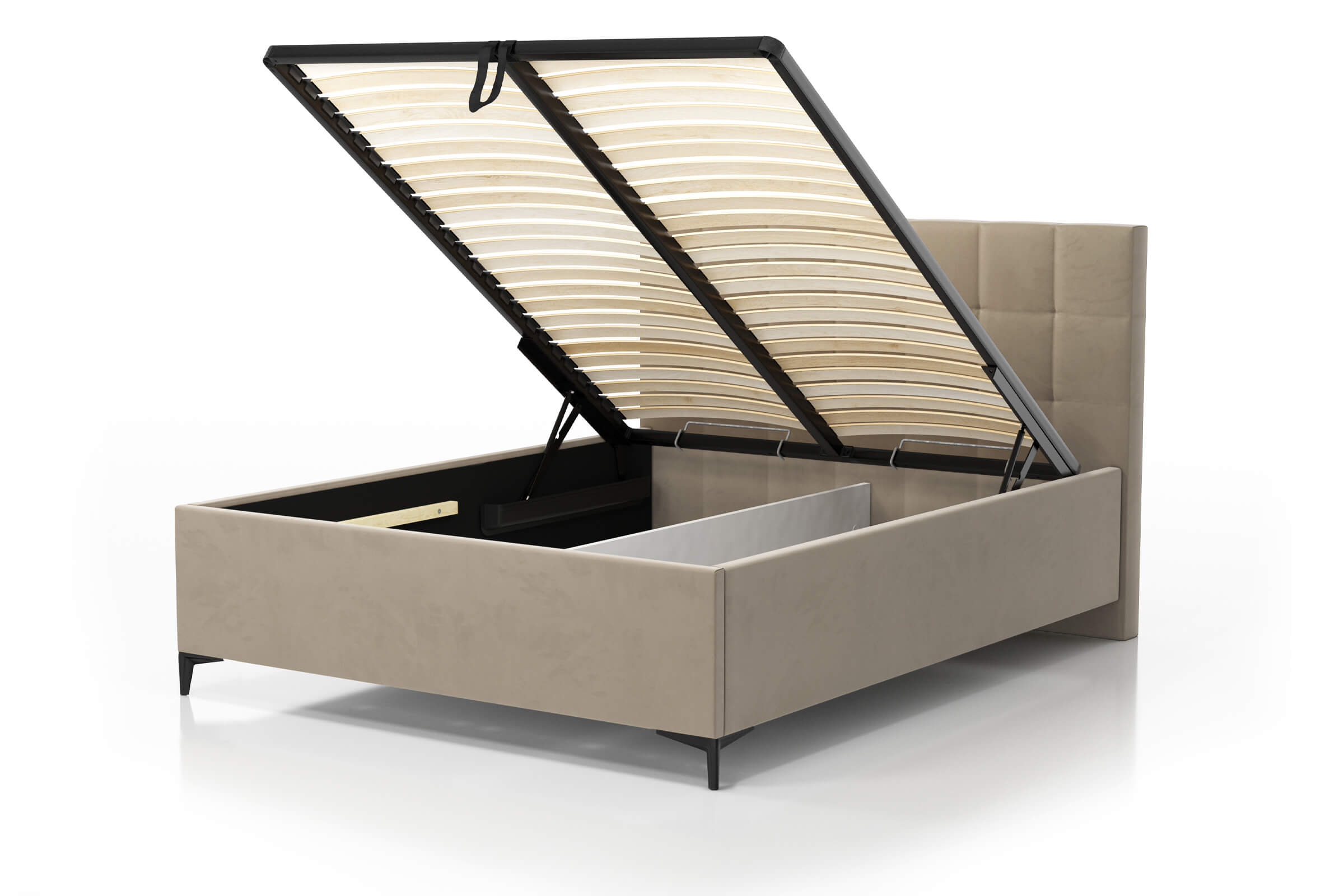 Wyposażone w pojemnik na pościel, który zapewnia dodatkowe miejsce do przechowywania. Stelaż na ramie metalowej, zbudowany jest z 48 listew brzozowych giętych, elastycznych. Rama otwiera się przy pomocy siłowników gazowych, co znacząco ułatwia opuszczanie i podnoszenie stelaża. Łóżko przystosowane do montażu nóżek o wysokości 12 cm.