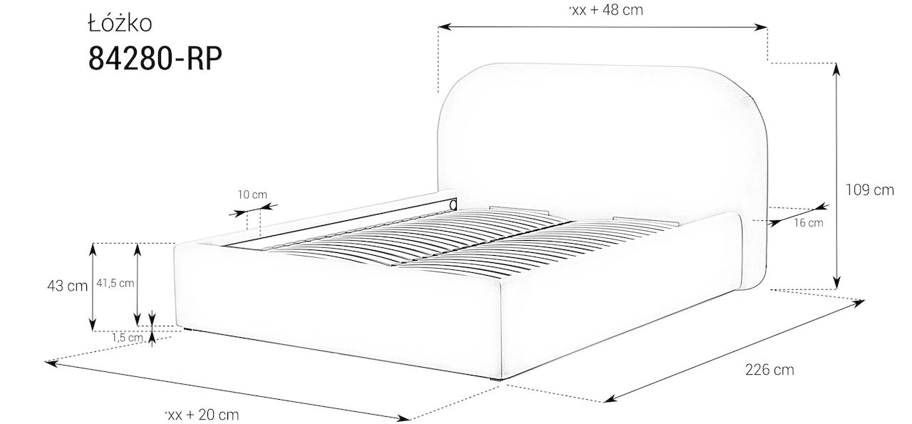 | Długość zewnętrzna łóżka | 221-230 cm |