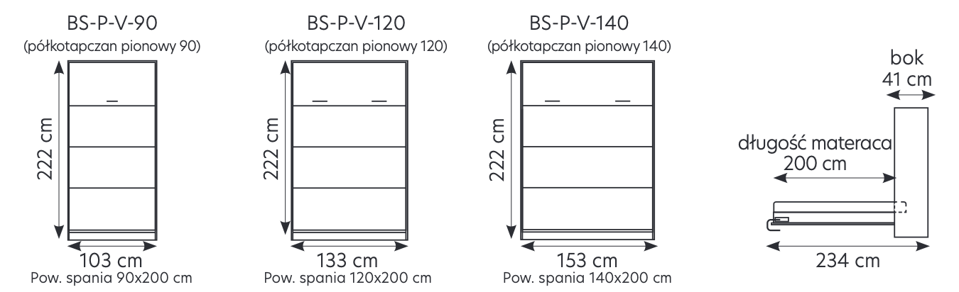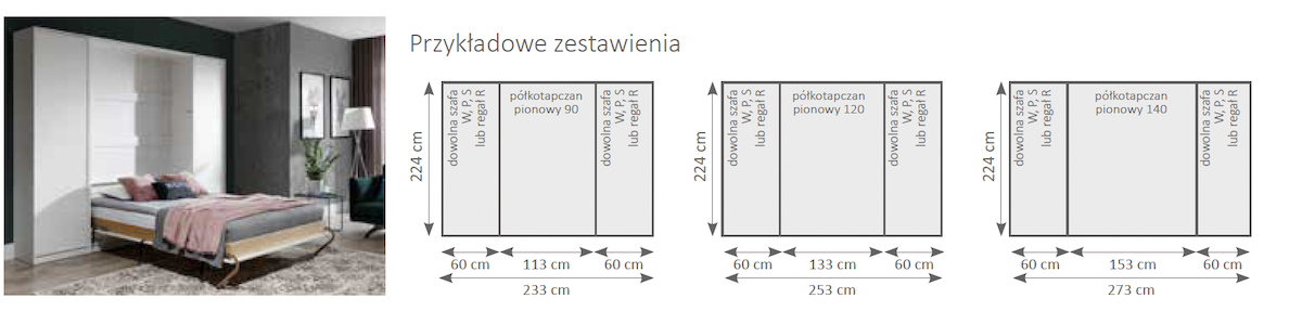 Cena wyjściowa dotyczy półkotapczanu pionowego 90x200 cm - zmienia się ona wraz z wybranym rozmiarem. Szafy są elementami dodatkowymi.