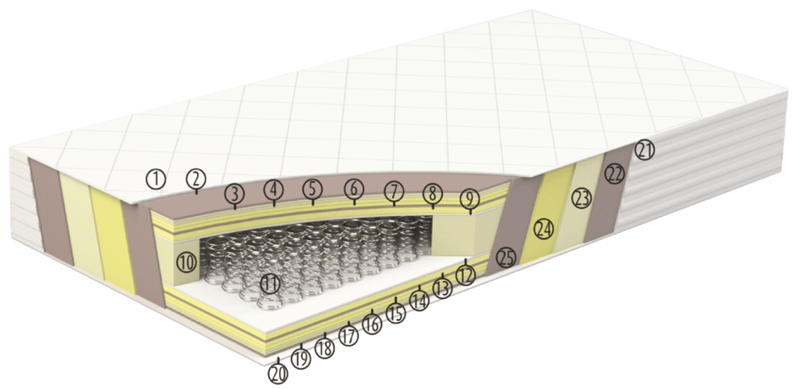 Taka budowa gwarantuje nam nieporównywalną trwałość materaca i dobre radzenie sobie nawet z bardzo dużymi obciążeniami.