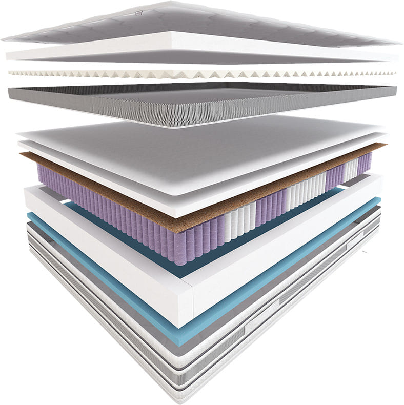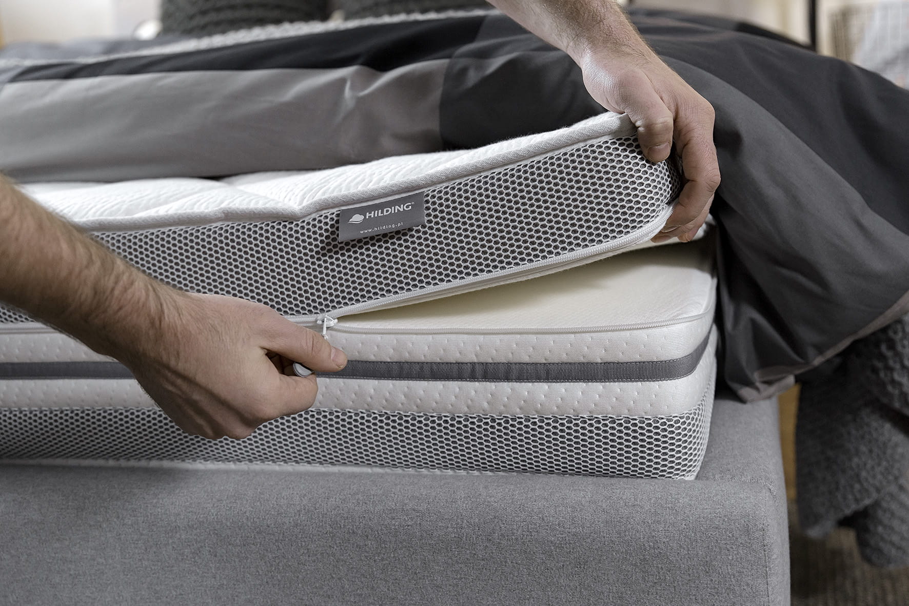 Podczas tworzenia materaca firma Hilding połączyła zalety mechanizmu sprężynowego Multipocket z pianką hybrydową Fusion – niezwykle wytrzymałym, odpornym na nacisk materiałem, który cechuje się dodatkowo podwyższoną odpornością na wilgoć. Do tego dołożono warstwę pianki wysokoelastycznej oraz cienką taflę sizalu.