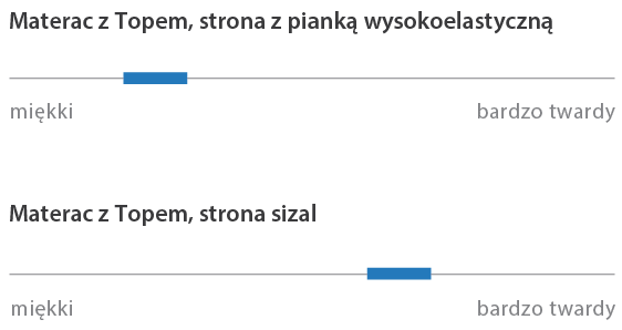 Odpinany top materaca wykonany został natomiast z profilowanego lateksu połączonego z pianką Visco. Dzięki temu dopasujesz twardość materaca do swoich indywidualnych potrzeb, mając możliwość stworzenia aż sześciu wygodnych opcji we własnej sypialni. Materac nawierzchniowy możesz bez problemu odpiąć i zabrać w podróż, zapewniając sobie komfort snu bez względu na to czy położysz go na rozkładanej wersalce u znajomych, na łóżku polowym czy na tradycyjnej sofie, podczas wizyty u rodziny.