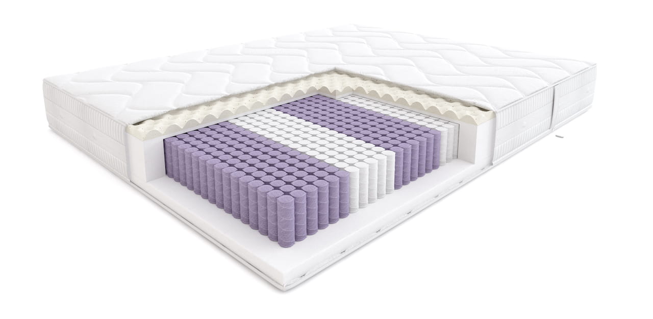 Wkład:7-strefowa sprężynowa Multipocket, po jednej stronie profilowana pianka lateksowa o wys. 4 cm, po jednej stronie pianka HR o wys. 4 cm.