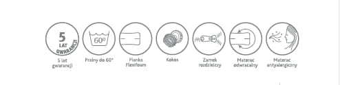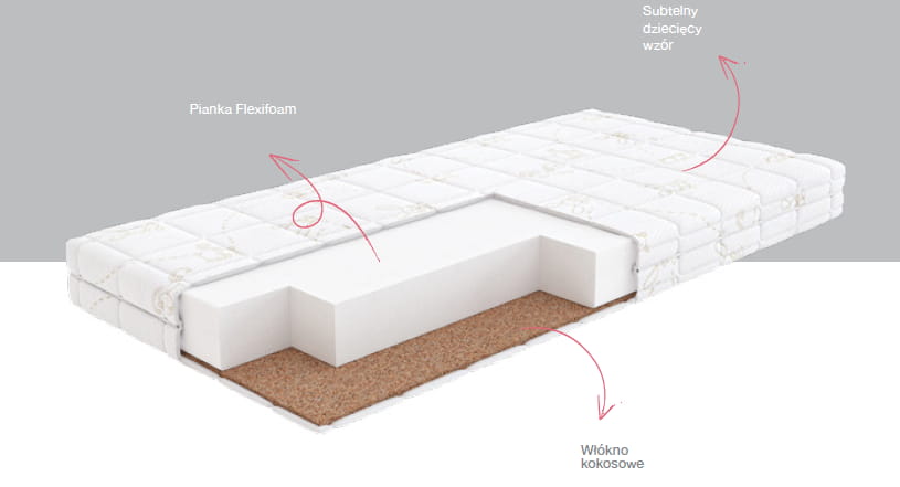 Wkład:profilowana pianka Flexifoam o wys.ok.10 cm, jednostronnie warstwa kokosu.
