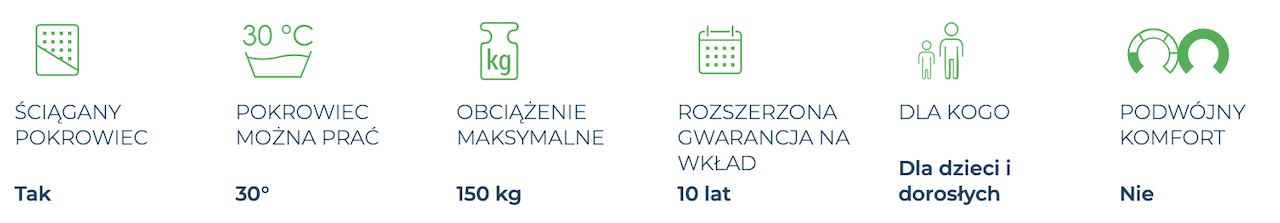 • PRODUKT MEDYCZNY KLASY 1 - materac został przebadany nie tylko pod kątem bezpieczeństwa ale także między innymi spełniania normy przeciwodleżynowe,