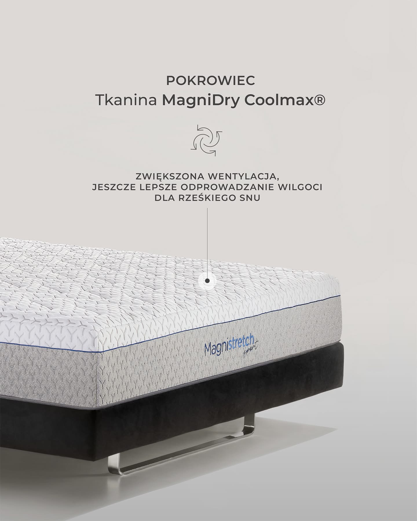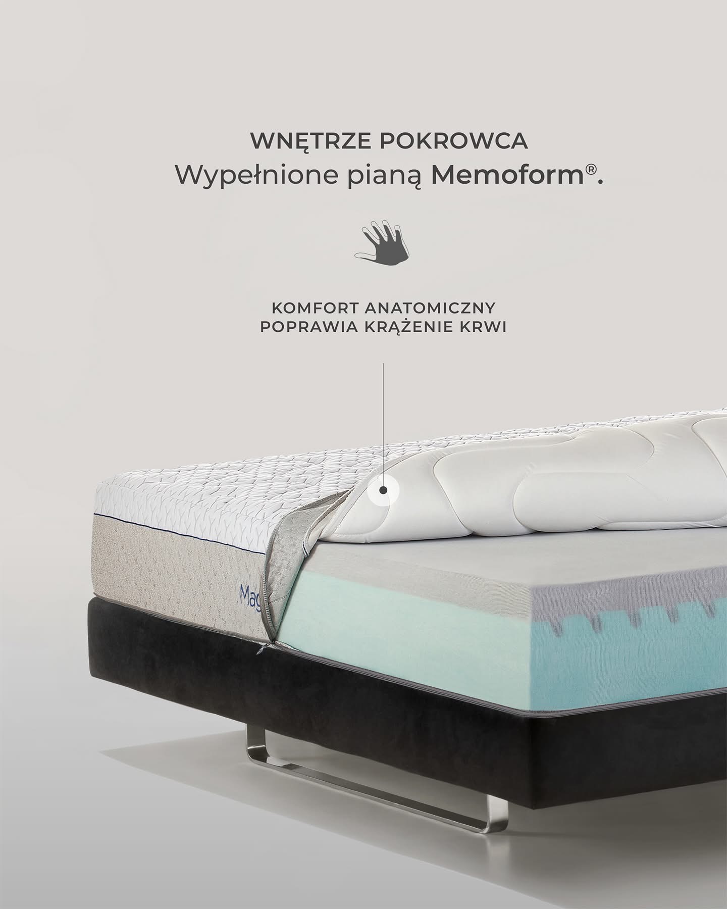 - Atrakcyjny zdejmowany i oddychający pokrowiec z tkaniny MagniDry CoolMax z opcją prania, pikowany pianką Memoform i delikatnym włóknem antyalergicznym Super Soft