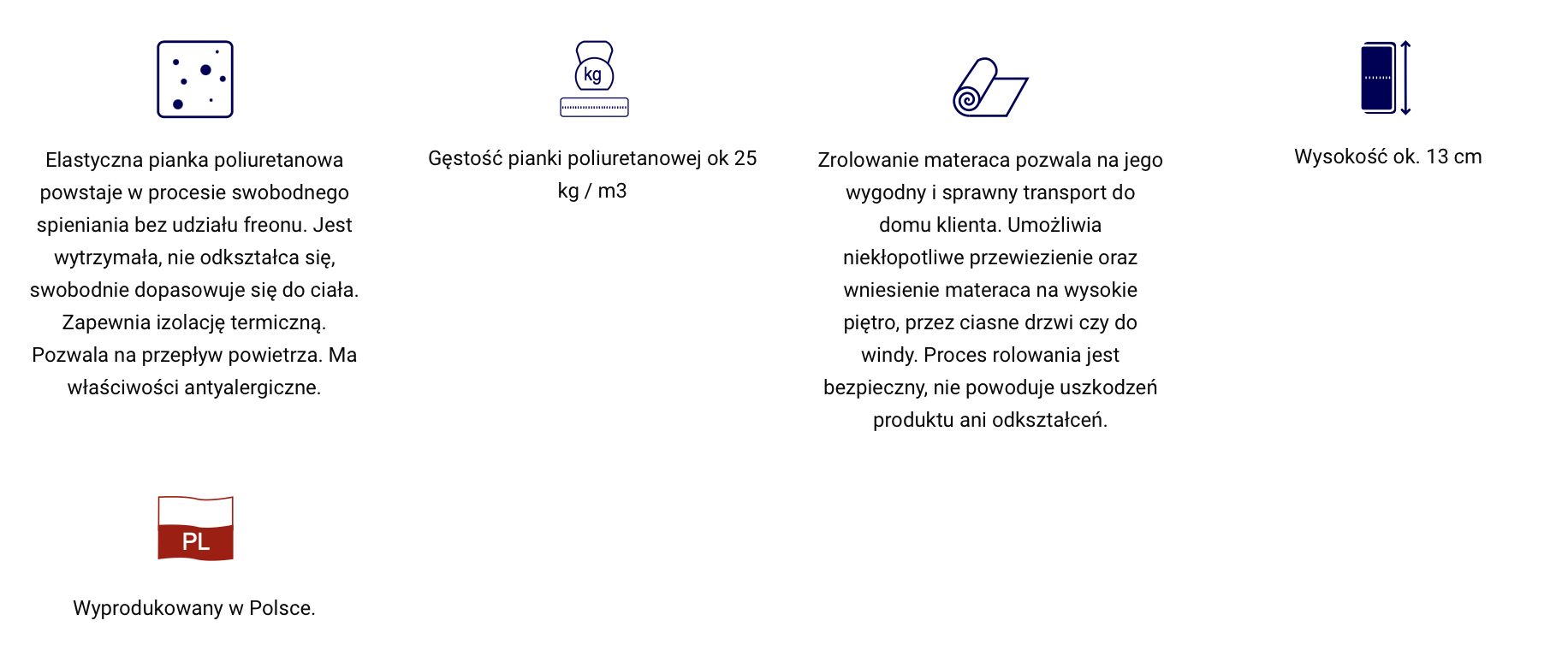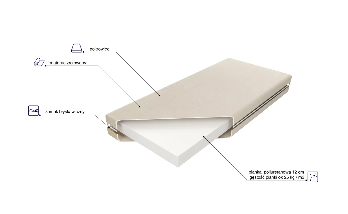 - wkład: pianka poliuretanowa T25 o wysokości 12 cm