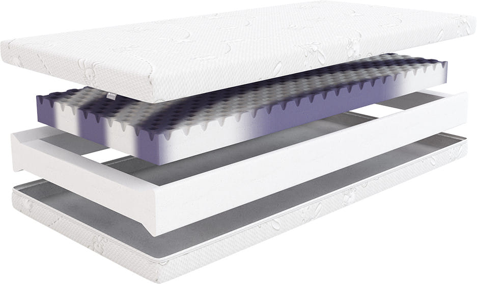 Wkład:profilowana wysokoelastyczna pianka Velvet Touch o wys.ok.10 cm, podwyższone boczki z pianki Flexifoam o wys.12 cm