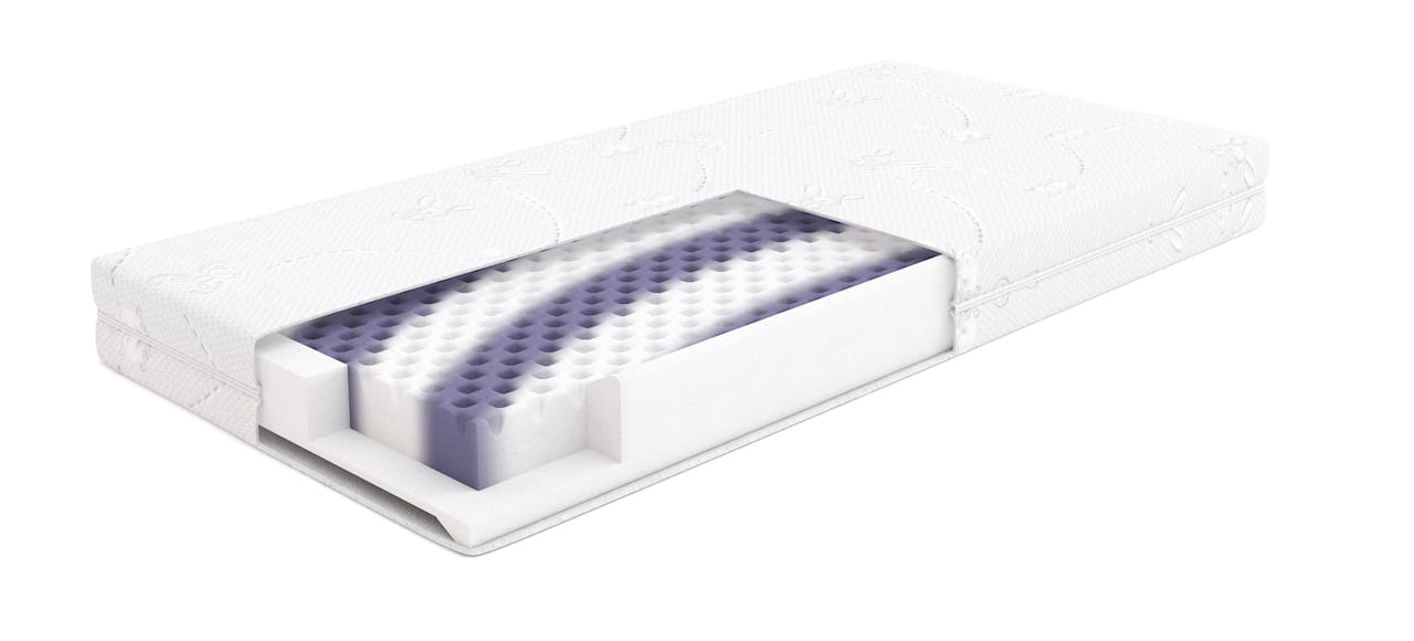 Materacyk jest przeznaczony dla niemowląt od pierwszych dni życia. Ubrany w innowacyjny pokrowiec Lotus o właściwościach wodoodpornych.
