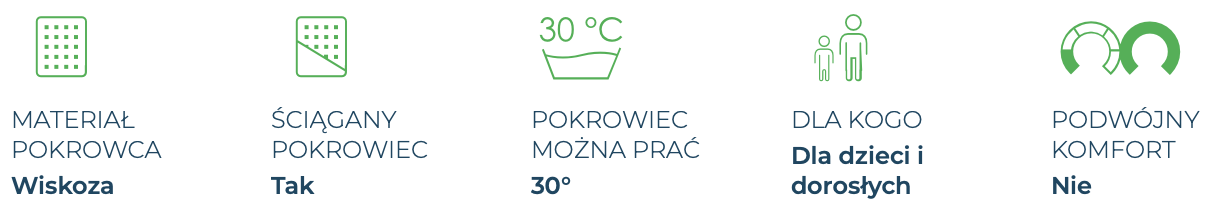 • posiada bardzo przyjemną w dotyku, zdejmowaną i nadającą się do prania (30°C) poszewkę wiskozową.
