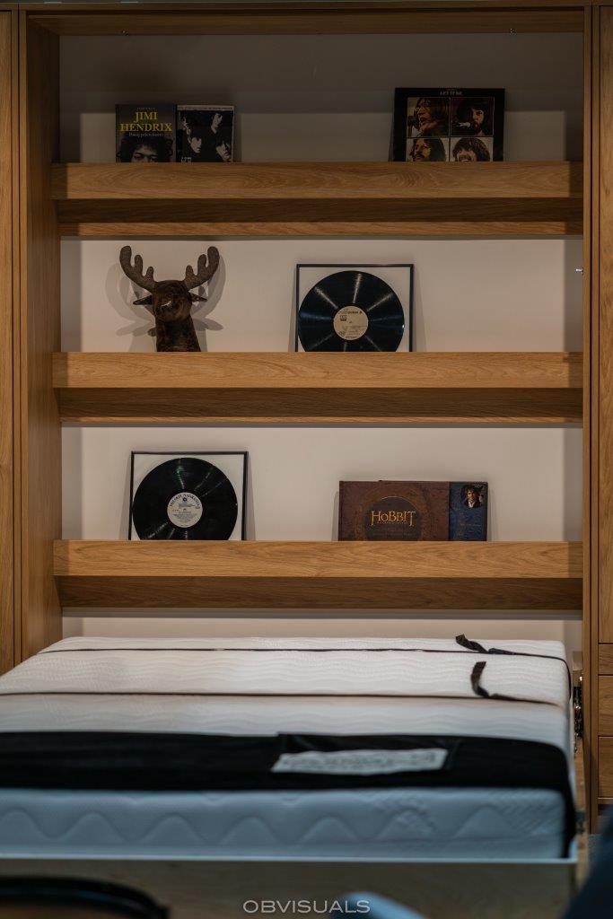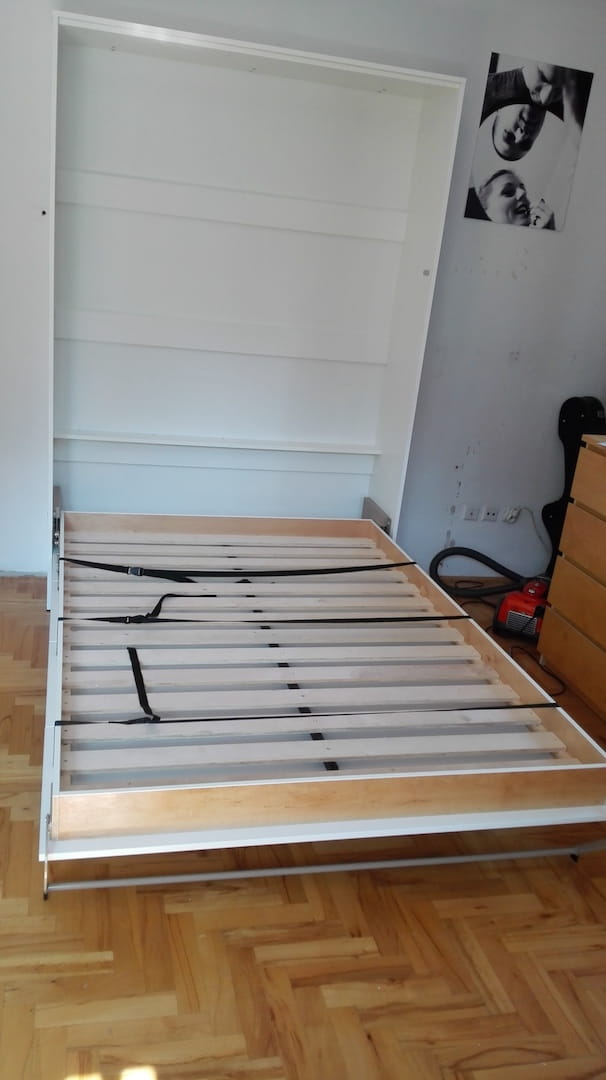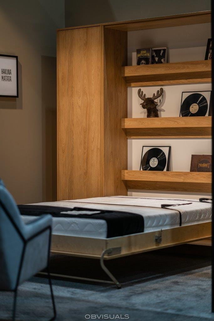 Pionowy półkotapczan zajmuje bardzo niewiele miejsca. W zależności od tego, jak dużo mamy go w pomieszczeniu,  skonfigurujemy półkotapczan w bardzo praktyczny zestaw mebli. Możemy dodać jedną lub dwie wąskie, ale pojemne szafy – z samymi półkami lub półką i drążkiem. W niewielkim pokoju po złożeniu łóżka powstaje spora przestrzeń potrzebna do codziennego życia. Idealne rozwiązanie do pokoju nastolatka.