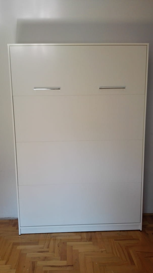 Łóżko w szafie/półkotapczan pionowy GENIUS (biały połysk) 120x200 | 140x200|160x200 z siłownikami gazowymi i szafami do wyboru