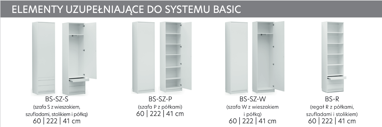 Półkotapczan poziomy Basic 90x200 | 120x200 | 140x200 kolory matowe jednoosobowy lub dwuosobowy z szafami i nadstawką do wyboru