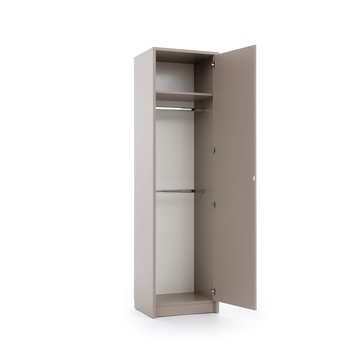 W zależności od tego, ile przestrzeni mamy w pomieszczeniu, możemy skonfigurować półkotapczan w bardzo praktyczny zestaw mebli. Możemy dodać jedną lub dwie wąskie, ale pojemne szafy – z samymi półkami lub półką i drążkiem.