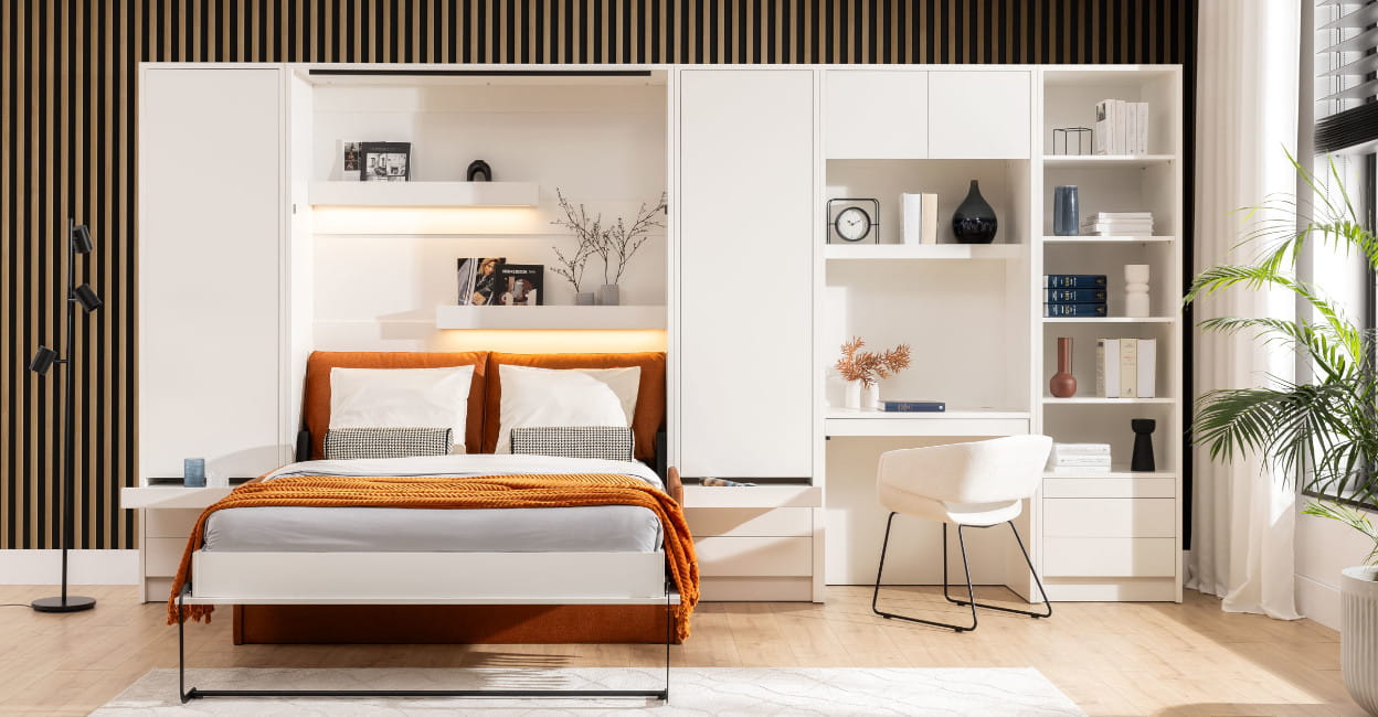 Łóżko w szafie/półkotapczan z rozkładanym biurkiem Genius 120x200 | 140x200  kolory matowe z szafami do wyboru