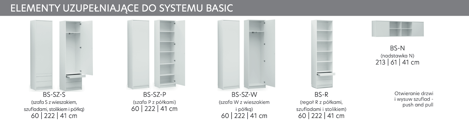Półkotapczany Basic wykonane są z płyty meblowej o gr. 18 mm. Konstrukcja oparta o bezpieczny sprężynowy system podnoszenia i opuszczania łóżka. Uchwyty do półkotapczanów w dekorach białych oraz dąb Sonoma w kolorze srebrnym (chrom), w dekorach czarny/dąb Lancelot oraz Congo w kolorze czarnym.