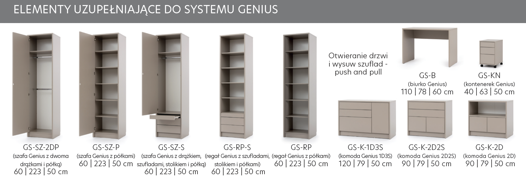 • Drzwi oraz szuflady w szafach i komodach otwierane za pomocą mechanizmu "push & pull".