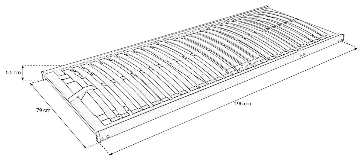 28 elastycznych listew, dodatkowa regulacja twardości. Stelaż w kartonie do samodzielnego montażu.Polecamy do materacy piankowych, lateksowych, wysokoelastycznych i termoelastycznych.